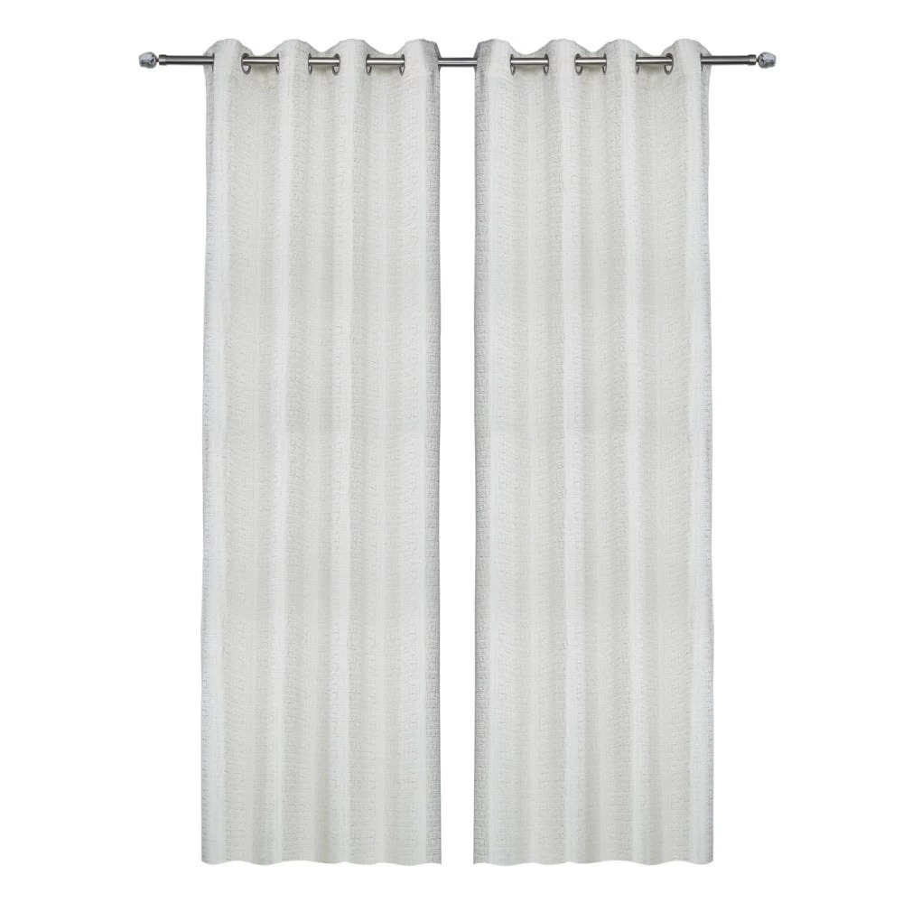 Add an elegant, textured flair to your interior setting with this set of two curtains. Highlighting textured patterns in gleaming gold all over, this eyelet-fitted curtain set in beige seamlessly filters out the light and protects your privacy.