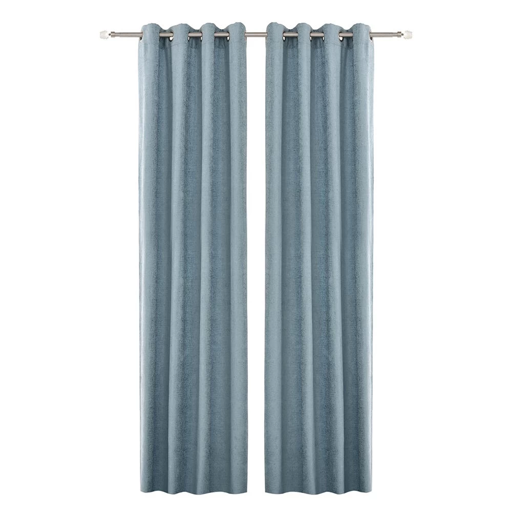 Give your space a warm and inviting atmosphere with this pair of elegant curtains. Donning a stunning blue hue, these curtains look surreal in any décor and boast patchy textures for enhanced appeal. The silver grommets provide extra flair and user convenience.