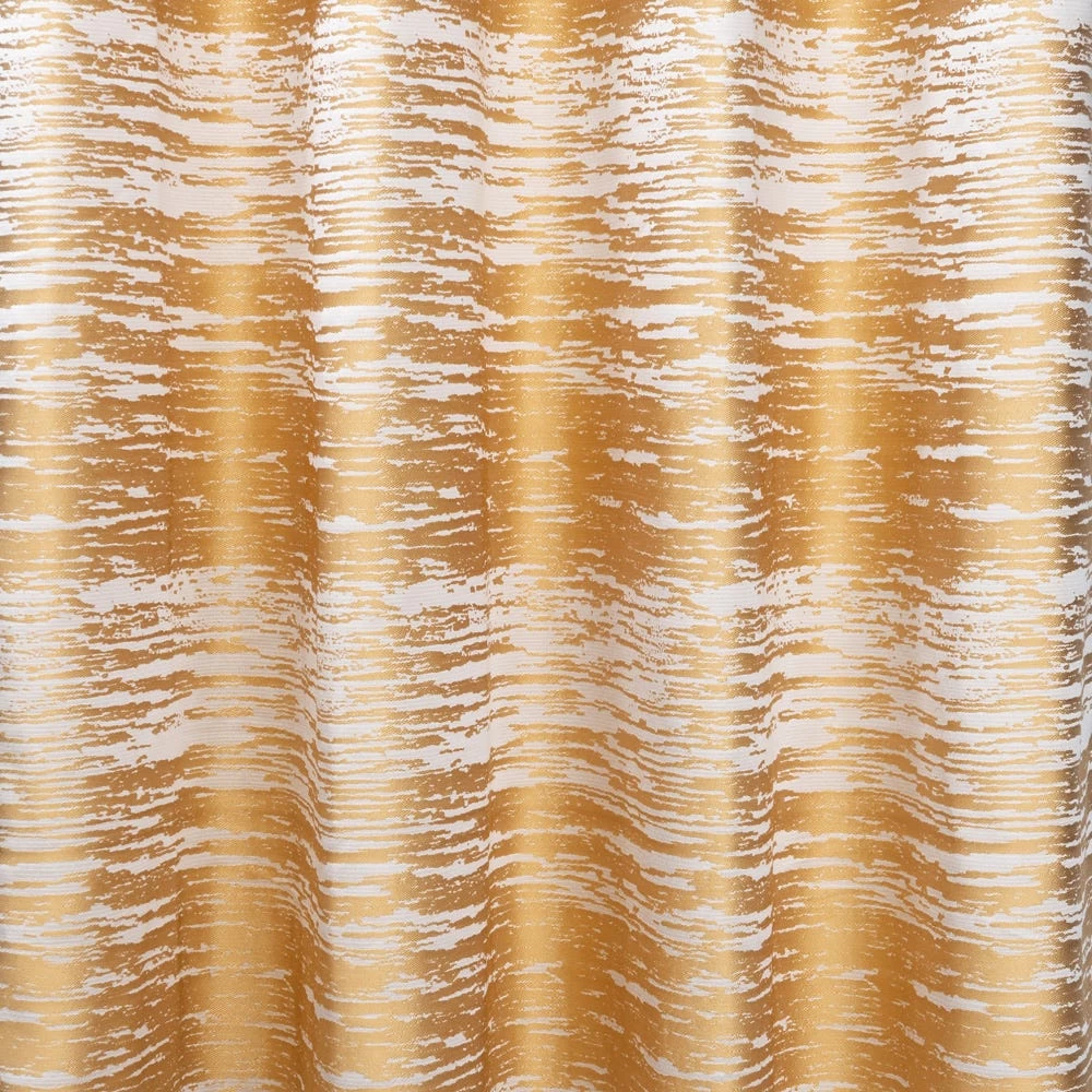 Make your home a shining oasis by adding our elegant and bold Yuri curtain set. The luxurious flowing stripe design in a light tone makes this blackout curtain in gold an eye-catching addition to any room. It has metal eyelets for ease of hanging and pleaded flair.