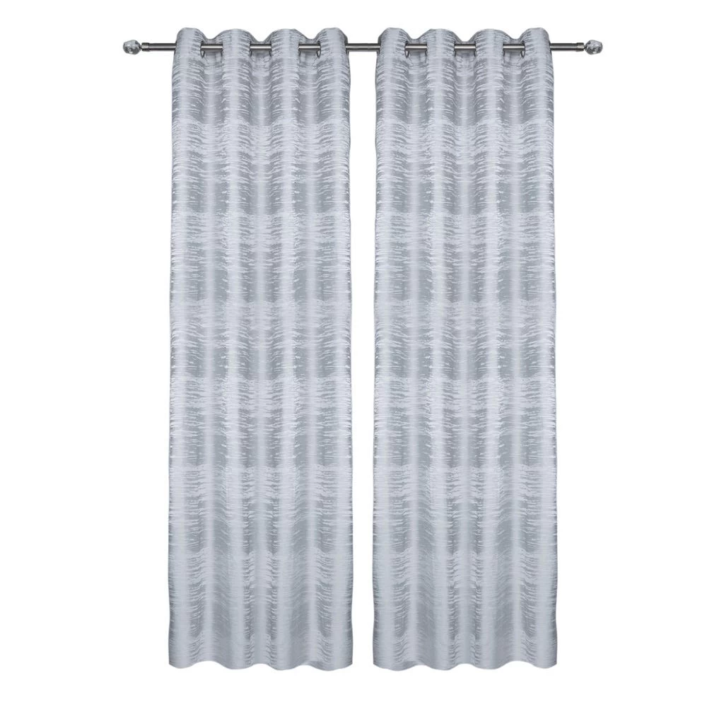 Make your home a shining oasis by adding our elegant and bold Yuri curtain set. The luxurious flowing stripe design in a light tone makes this blackout curtain in light grey an eye-catching addition to any room. It has metal eyelets for ease of hanging and pleaded flair.