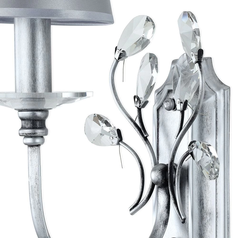 This marvelously beautiful wall lamp will beautify your home with its lampshade and crystal accents. With an all-silver hue, this Italian-style wall lamp illuminates the area with the addition of an E14 LED lamp.