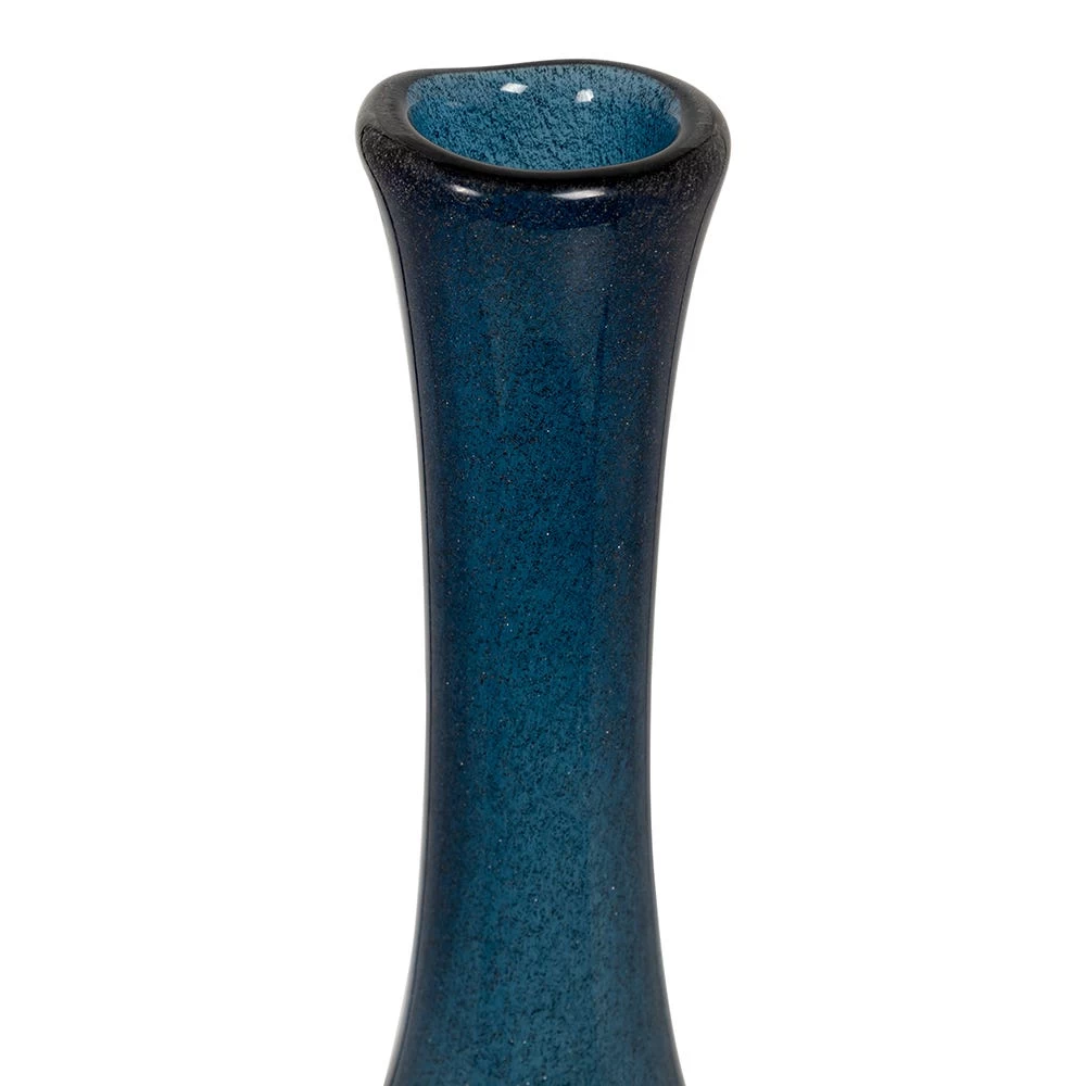 If you are searching for a sleek addition to your tables, this handmade glass vase is ideal. Its slim design with a glossy finish emanates an elegant vibe to your home decor.