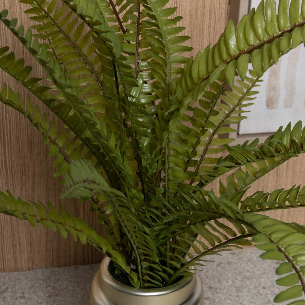 Fill up the empty space of your home with the greenery and fresh vibes of this charming faux fern. Housed in a sophisticated brushed gold pot made of ceramic, this artificial fern has realistic details that charm one and all.