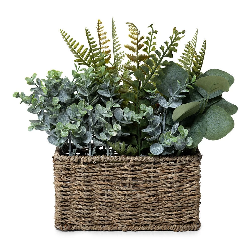 This seagrass basket is a unique and distinctive way to boost the atmosphere and add some greenery to your indoor or outdoor space. This basket with artificial, elongated fronds that give a full and luscious look. Perfect for decorating corners, walls and entryways, these ferns are an ideal pick to make a remarkable statement.
