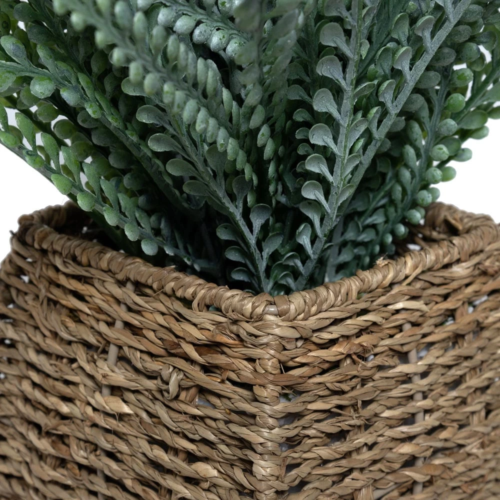 Bring home this seagrass basket to add some life and vibrancy to any space. Displaying natural-looking ferns, this artificial decor item can easily be hung as a standalone piece, on a hanging planter, or simply place near a window to catch the realistic-looking charm in the sunlight.