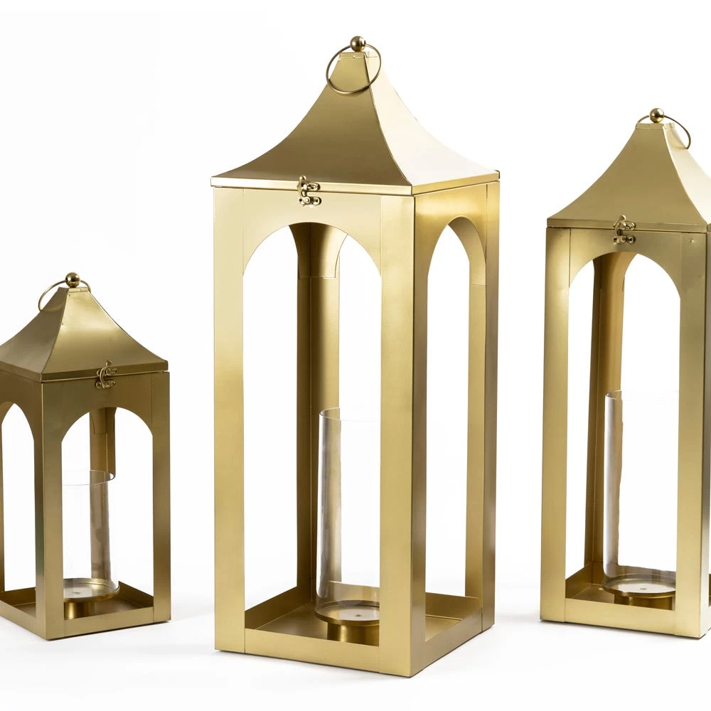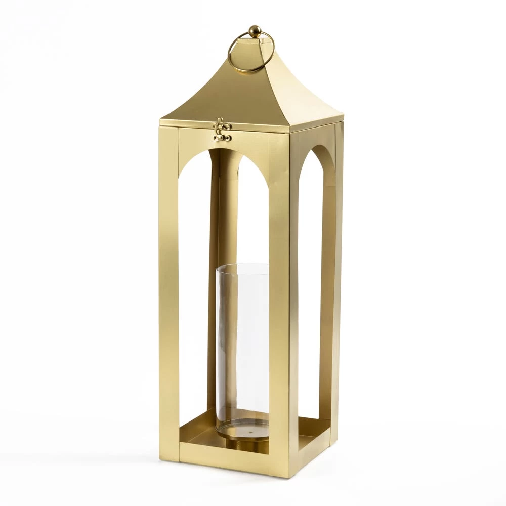 A decadent addition to any home decor, this lavish lantern in a dreamy gold hue brings the magic of candlelight to your life. With its elegant design and clear glass panels, this iron lantern serves as a stunning centrepiece, adding warmth to any room or outdoor space. Whether hosting a dinner party or enjoying a quiet evening alone, it is the perfect accessory to create an unforgettable atmosphere.