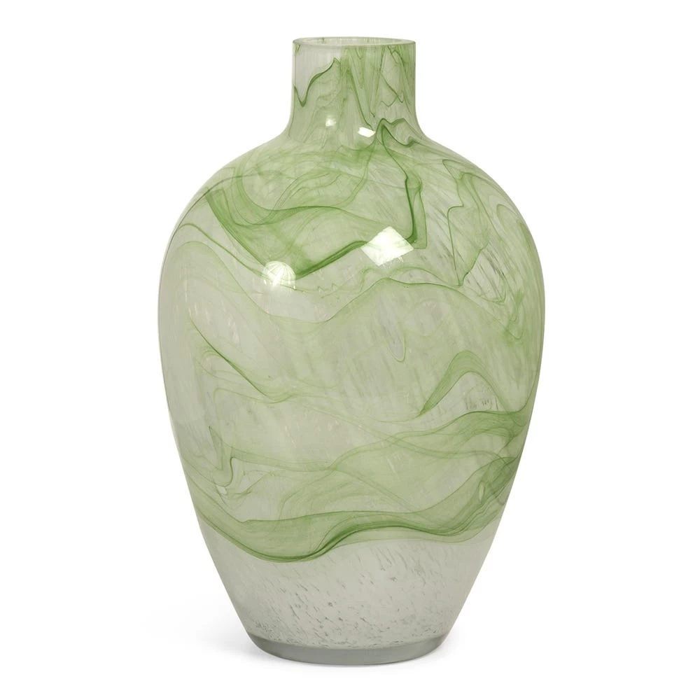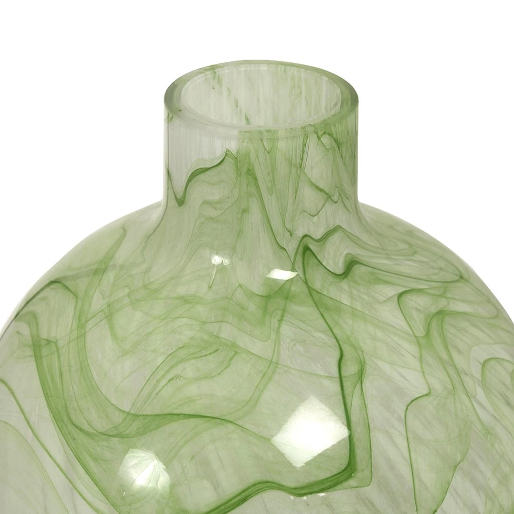 Show off your plants elegantly with this handmade green vase. Donning an exquisite swirl pattern, this glass vase adds a subtle, refined touch to any space.