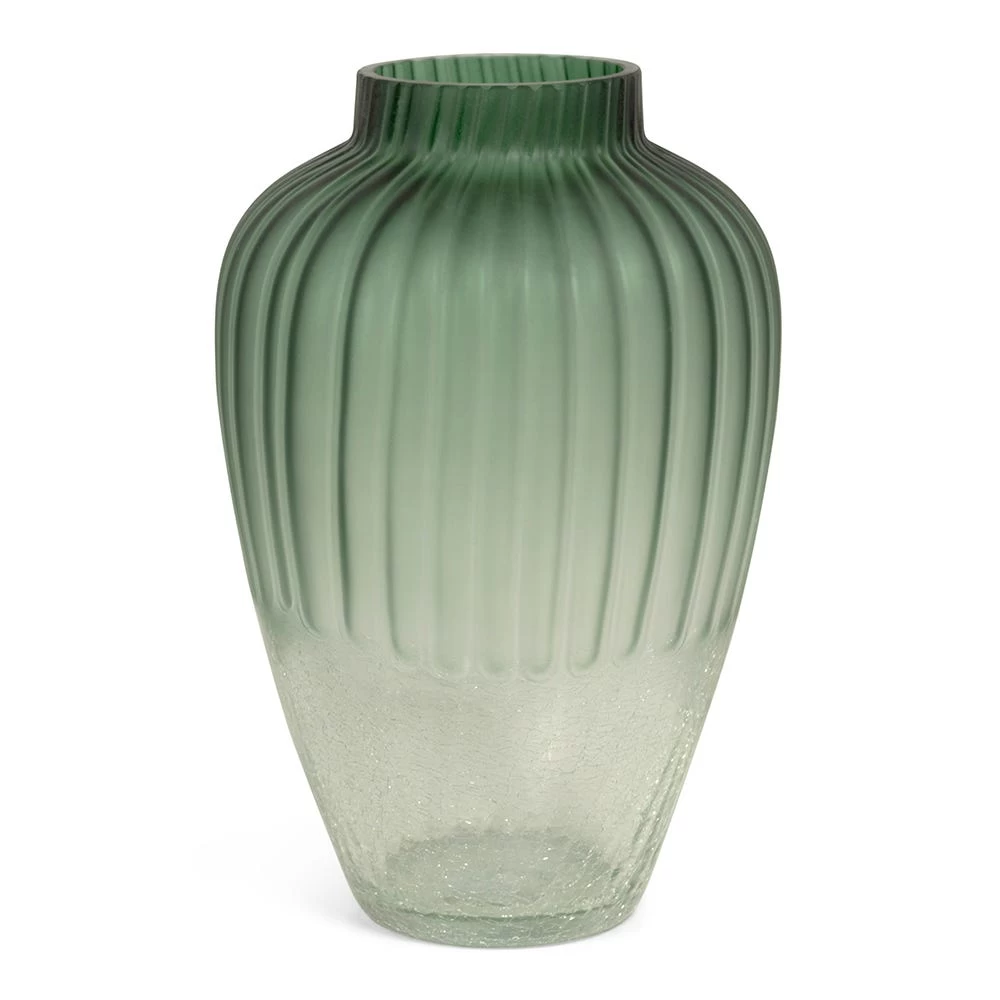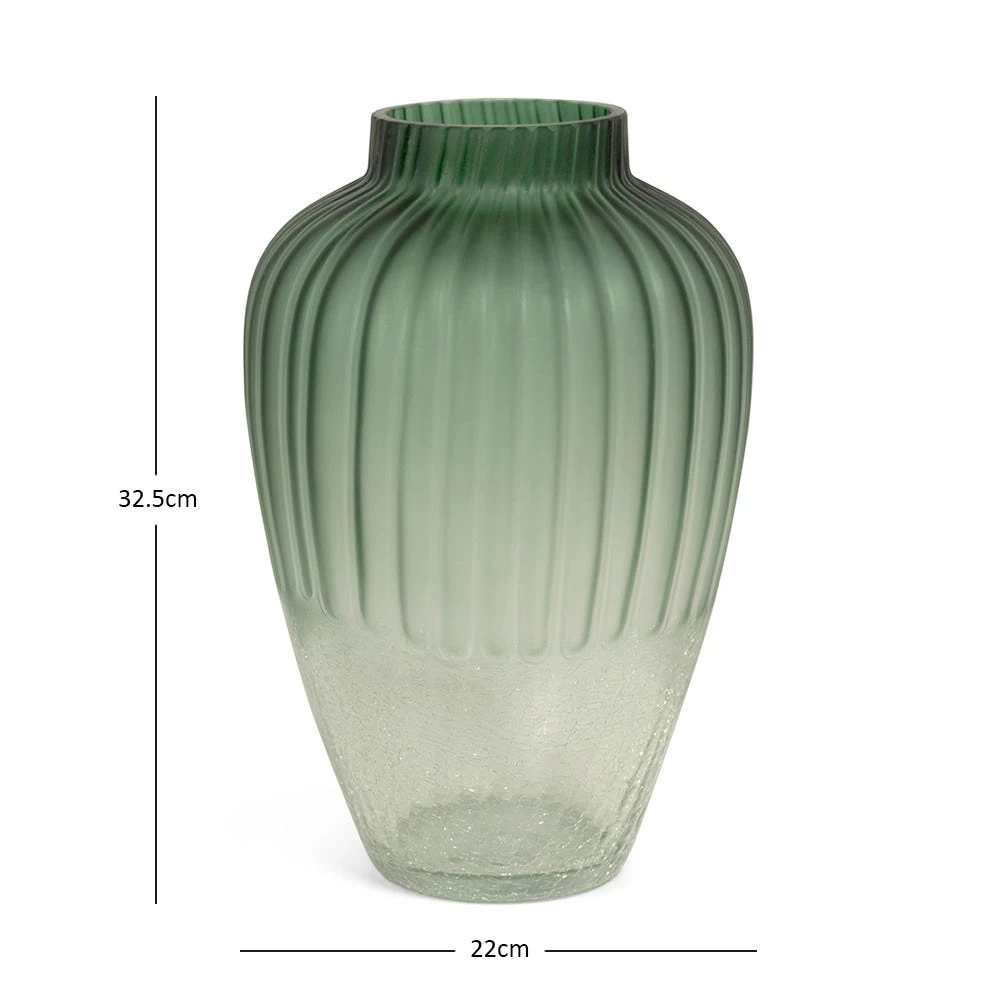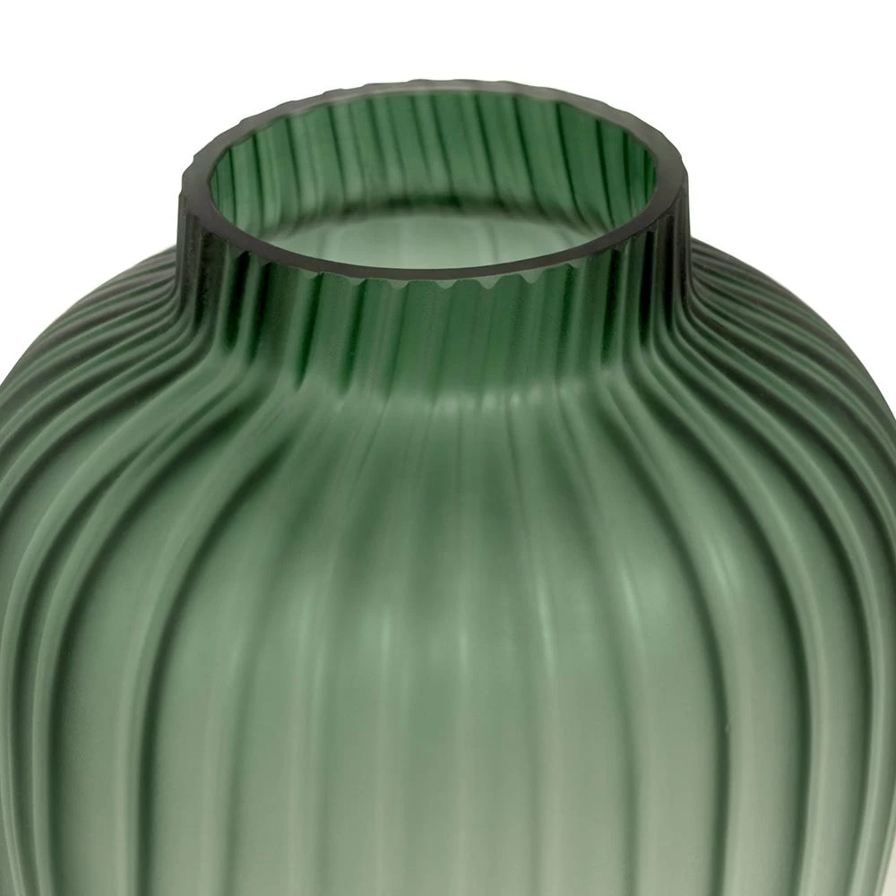 Introduce a calm and natural aesthetic to your house with this handmade glass vase. Its green hue and unique lined design amp up the aesthetic appeal.