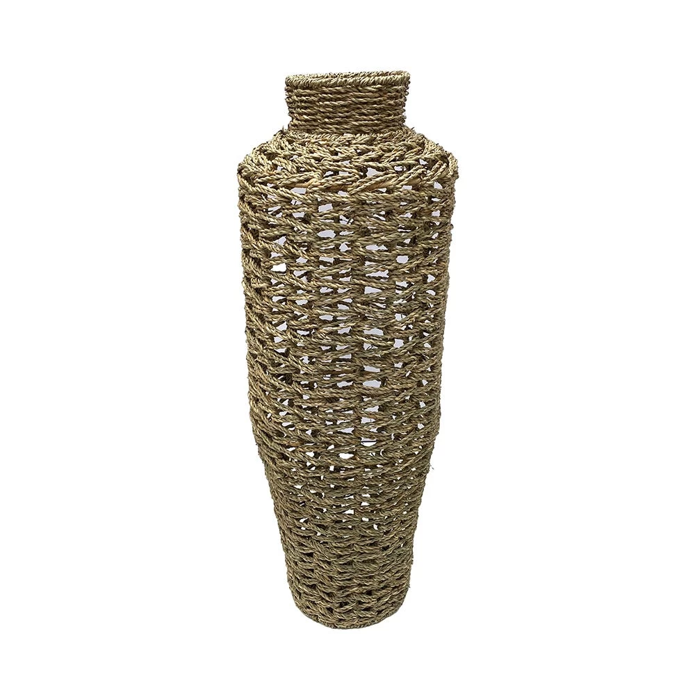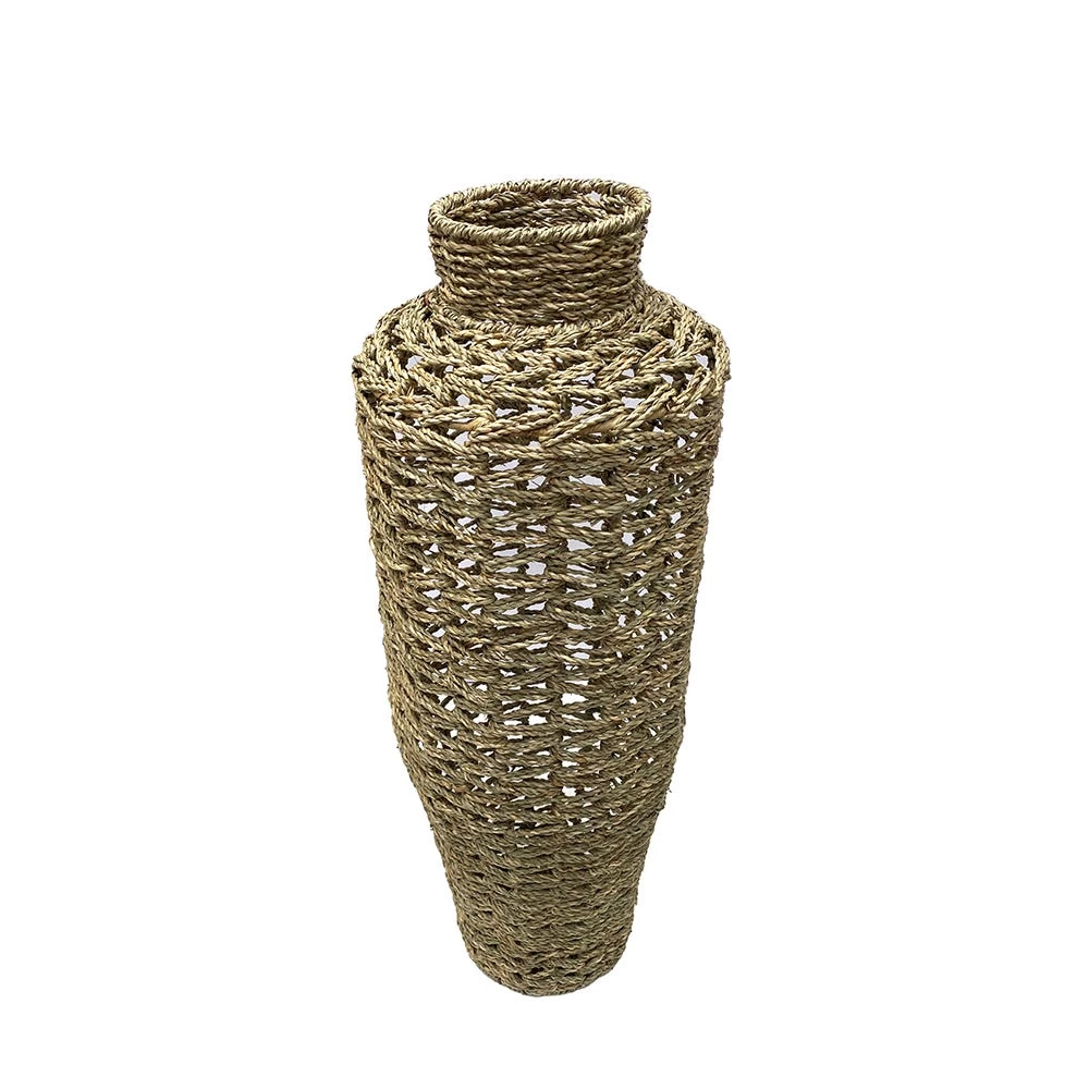 Bring a touch of boho chicness to your home with this handwoven vase. Crafted with seagrass and a sturdy metal frame, this vase features a natural finish that complements any decor. The classic design of this vase makes it perfect for flaunting your exquisite flowers and elevating your home’s style.