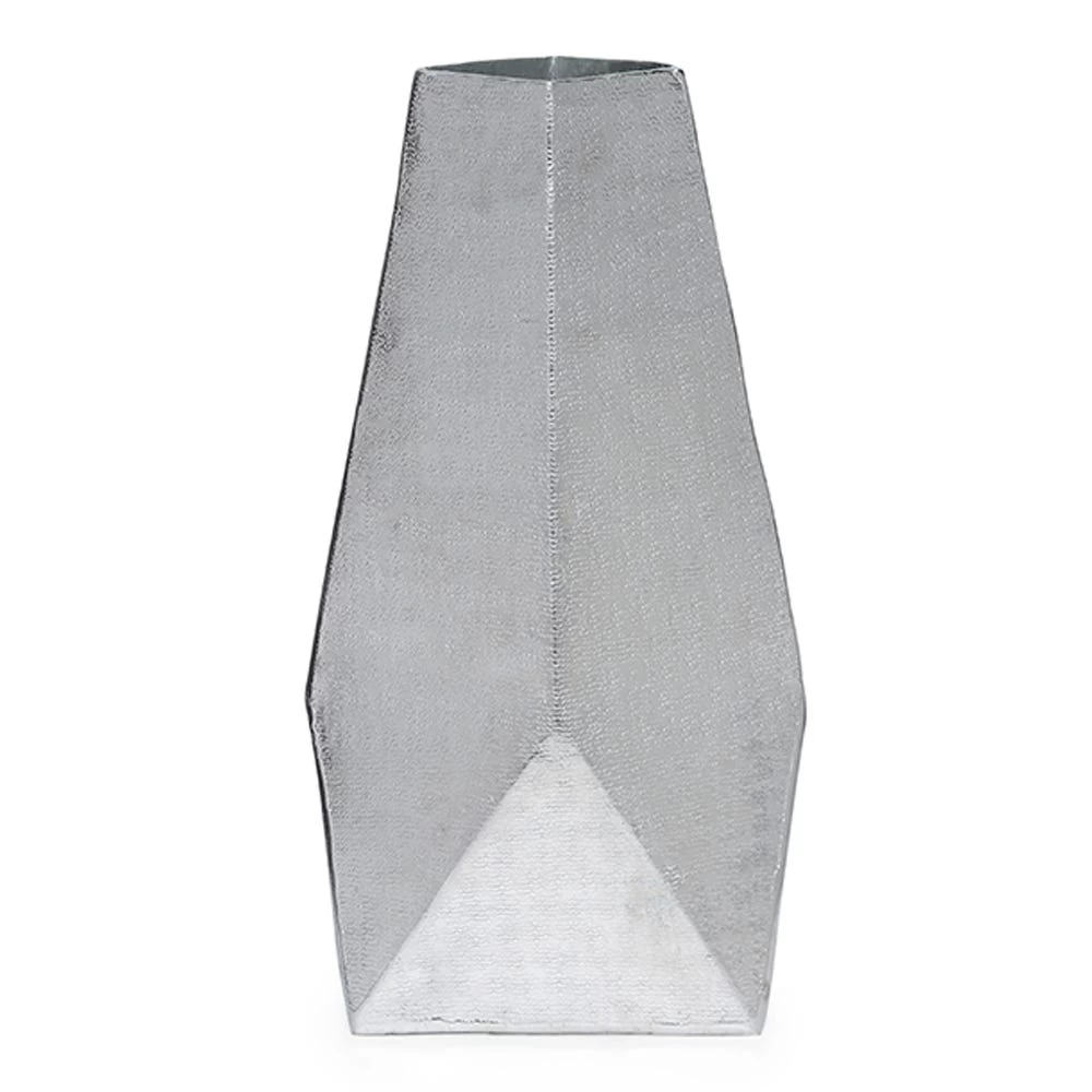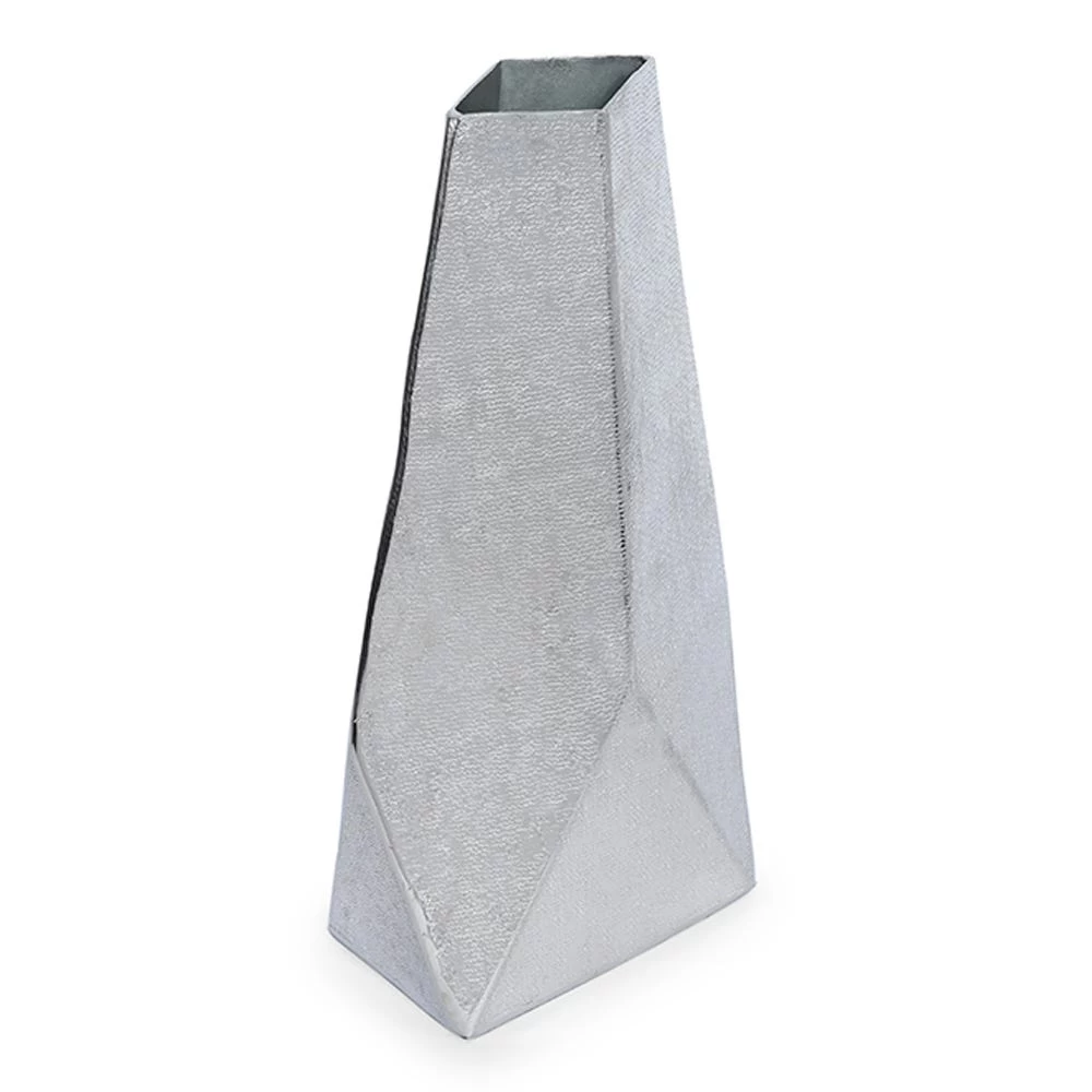 Bring depth to your space with the angular design and texture of this uniquely handcrafted metal marvel. Donning a rich silver hue, this vase complements the beauty of the long-stemmed faux sprays or artificial blooms.