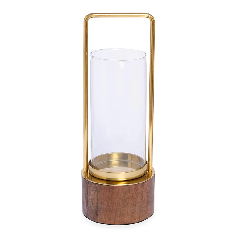 Featuring the natural charm of wood and the luster of metal in gold, our exclusive Cassia collection is a timeless modern classic. The simple, elegant design of this candle lantern makes it a good pick for both contemporary and traditional settings. Add a warm ambiance to your home with a burning candle inside the glass case.