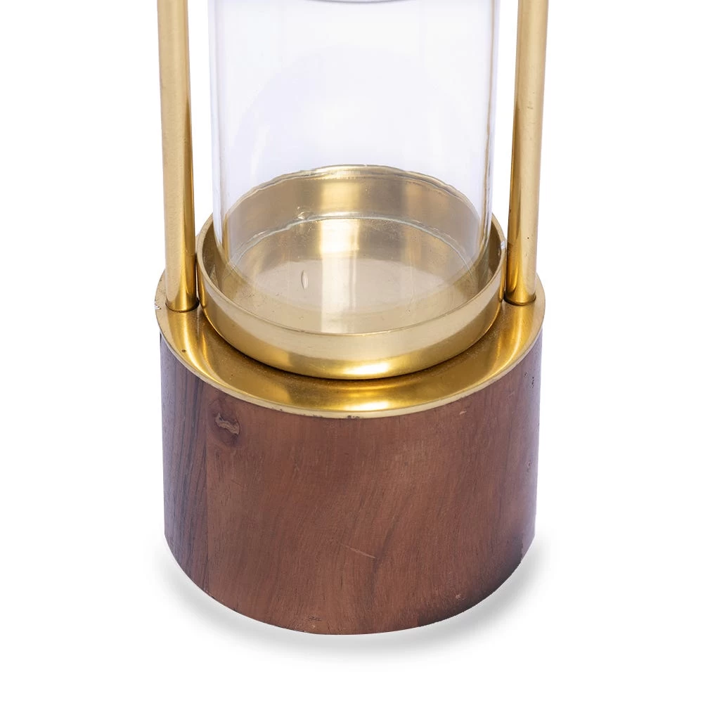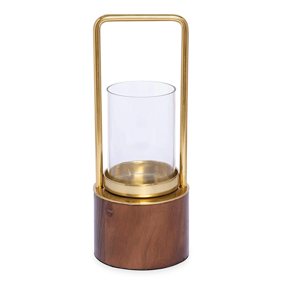 Featuring the natural charm of wood and the luster of metal in gold, our exclusive Cassia collection is a timeless modern classic. The simple, elegant design of this candle lantern makes it a good pick for both contemporary and traditional settings. Add a warm ambiance to your home with a burning candle inside the glass case.