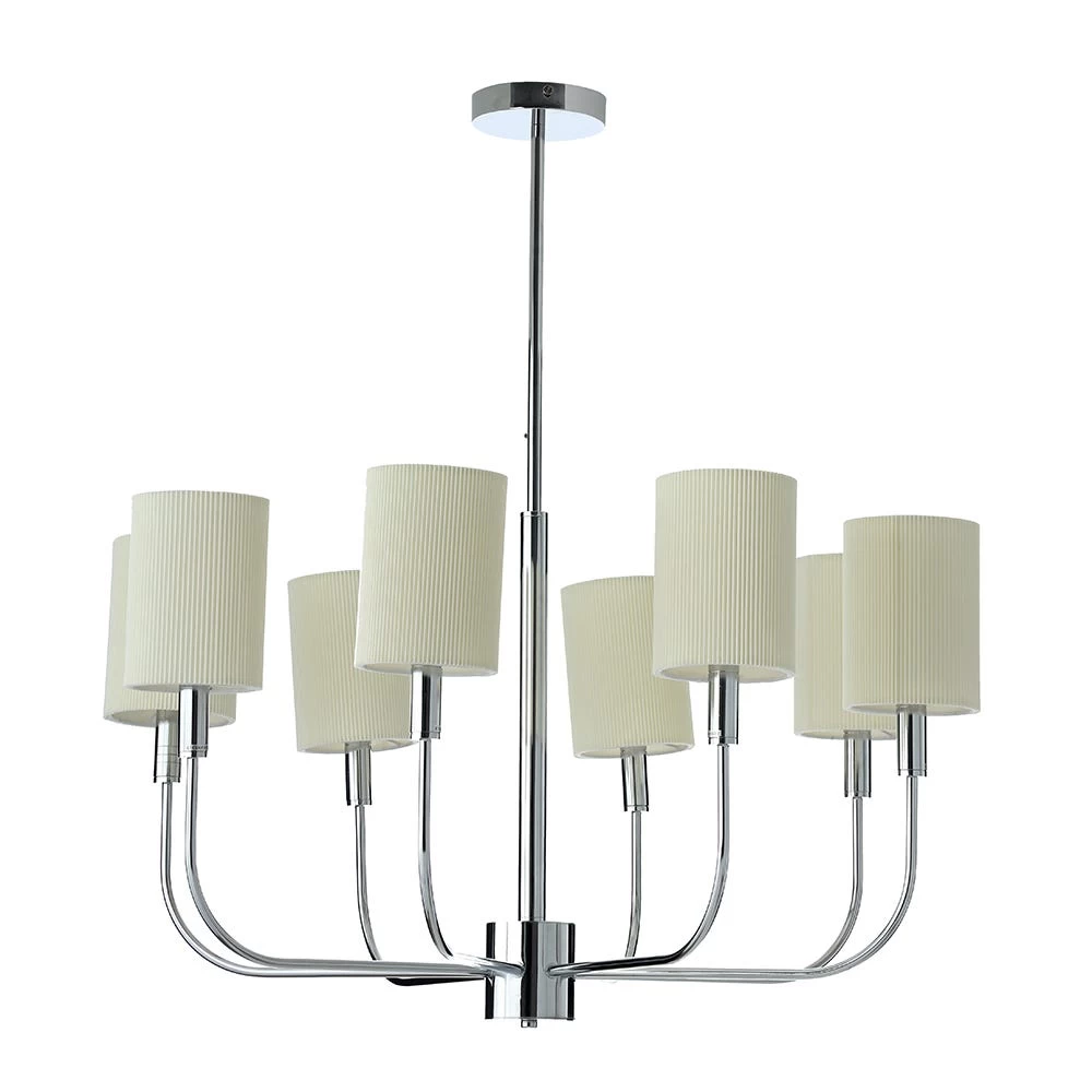 Enliven your indoor setting with this gorgeous Italian-style pendant lamp. Featuring an arrangement of eight textured white fabric lampshades, this pendant lamp is firmly supported by a metal frame that is finished in chrome hues. Add eight E14 LED lights to infuse light into your area.