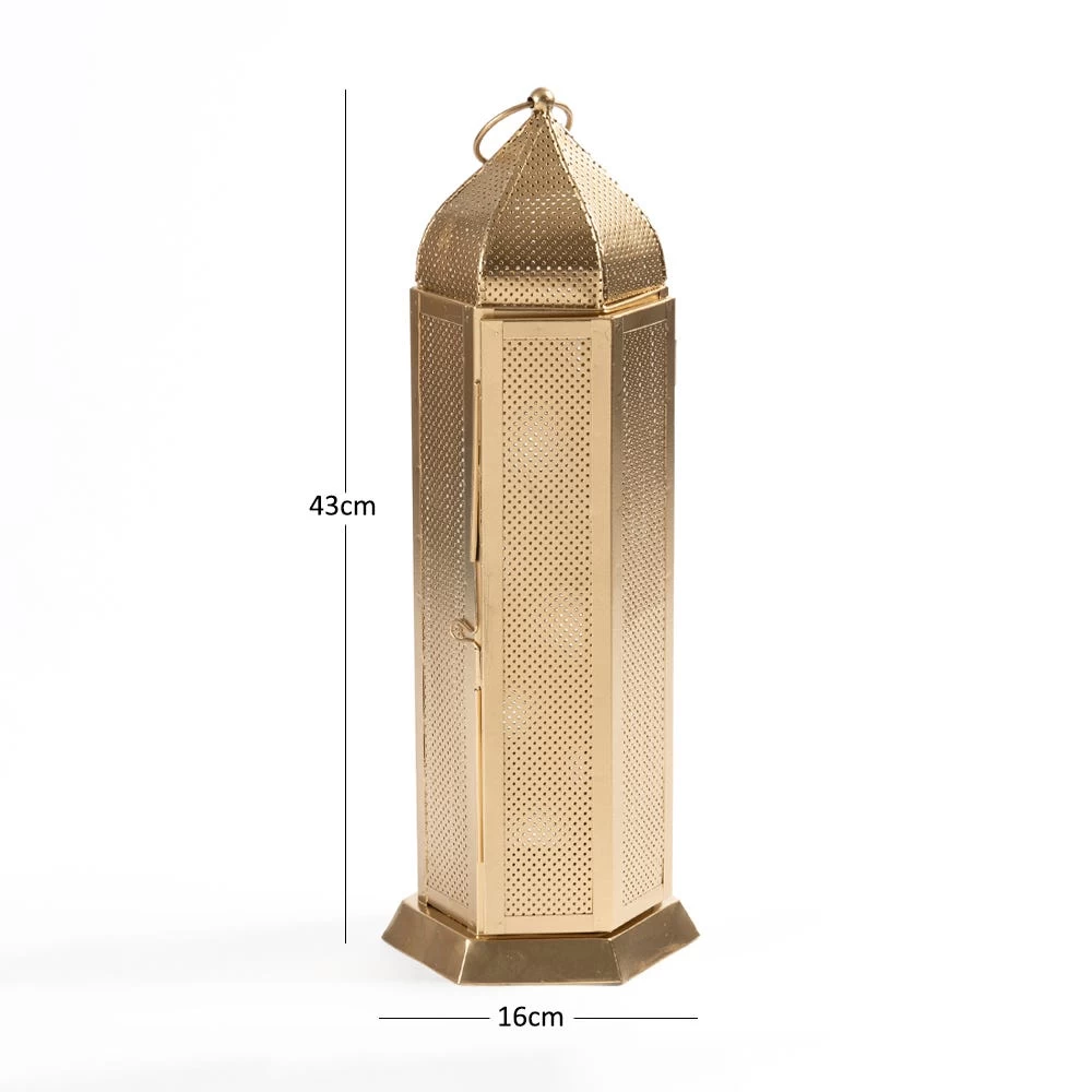 A stunning Ramadan-inspired lantern that injects glamorous ethnic flair and exudes warmth and illumination into any space. It comes with all-punched metal sheet frame for a rustic edge and intricate cutout details that can be used as a decorative accent or light source on special occasions. It forms a lovely console display or tabletop centrepiece when combined with pillar candles or t-lights.