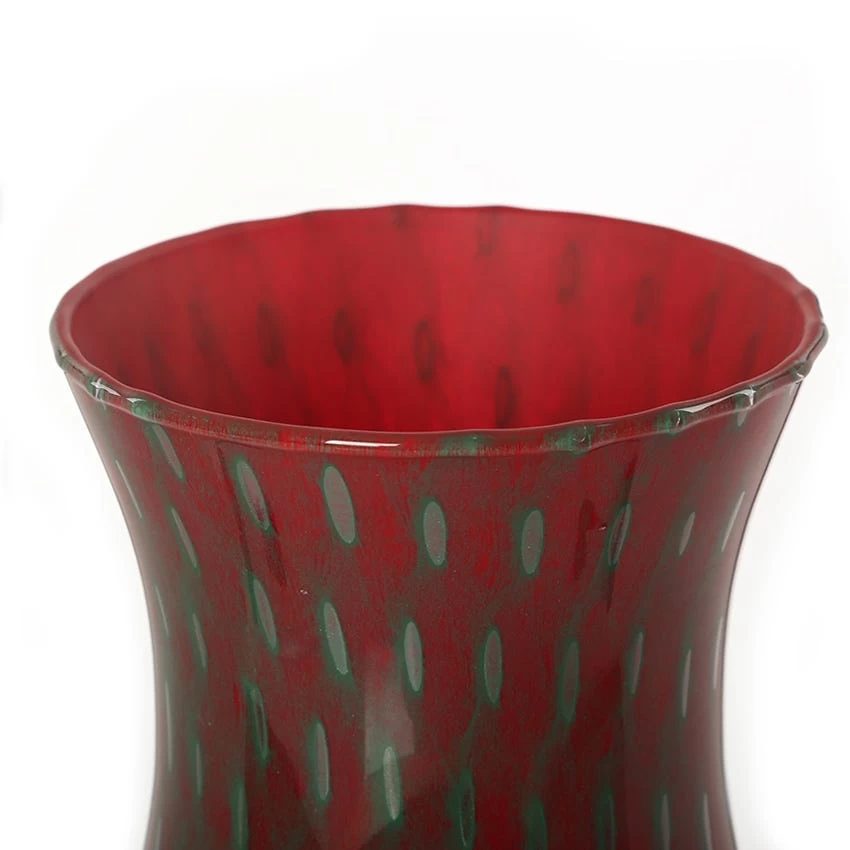 Get this glass vase to draw attention to your windowsill, desk, or any tabletop. Crafted with mouthblown glass by skilled Italian artisans, this lacquered-finish vase has a red base with green motifs that give it depth and shine to elevate your space.
