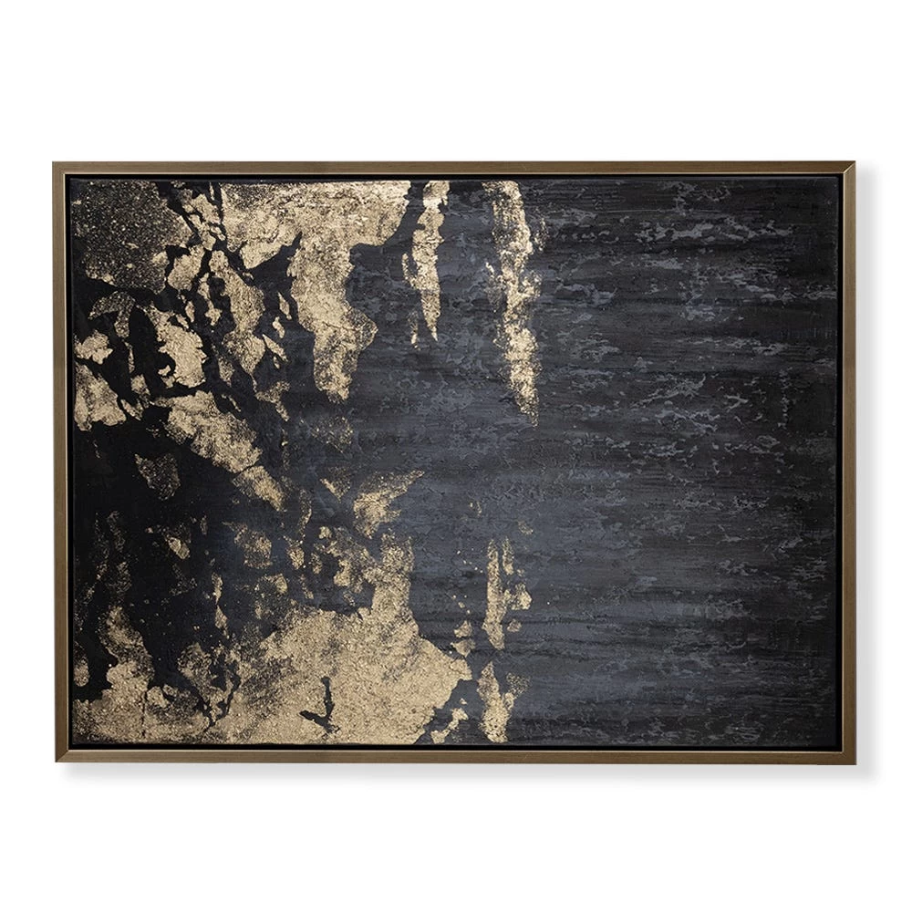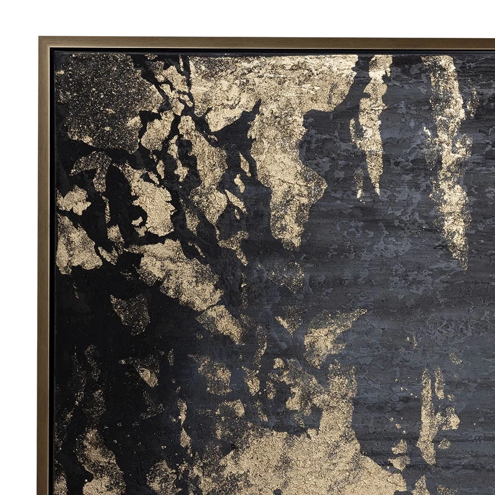 Lend a perfect finishing touch to your home décor with this glamorous framed wall art. This contemporary hand-painted canvas art piece grabs instant attention with its iconic abstract design in black and gold and arrives in a ready-to-hang design.