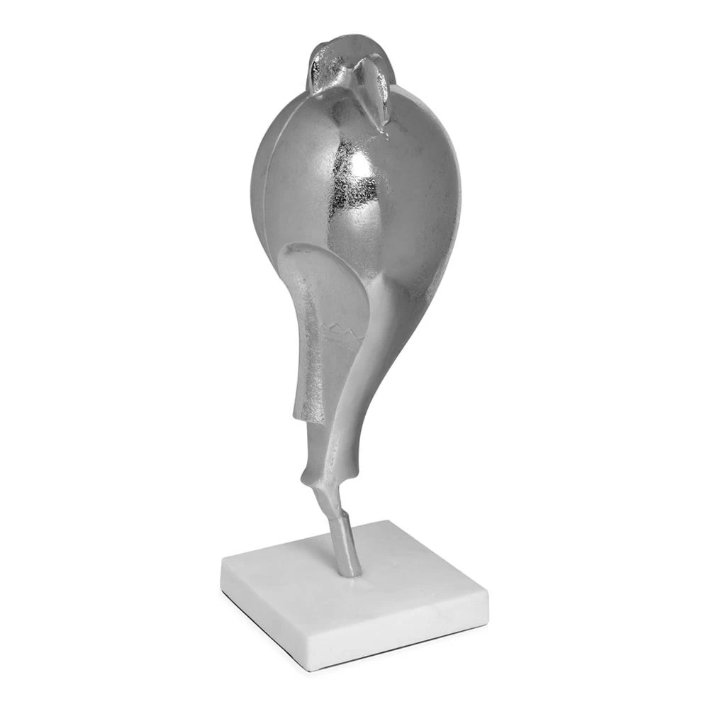 Set on a white marble base, this abstract figure will add character and life to your interior setting. This versatile metallic sculpture is a perfect accent piece for any modern home.