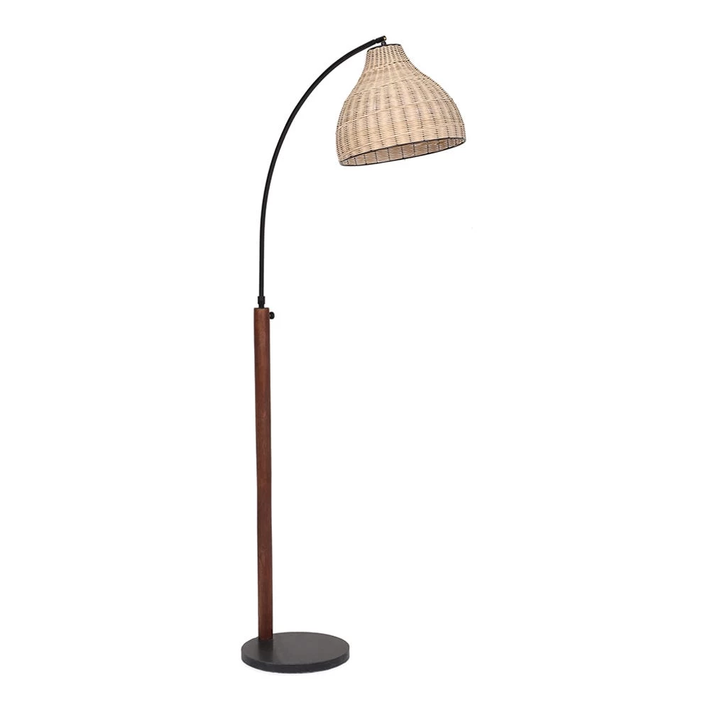 With a charming, farmhouse-inspired design, this floor lamp adds elevated, show-stopping style to your home. Sporting a lampshade made of cane material, this floor lamp has the charm of organic aesthetics. Let it illuminate your home with the addition of an E27 bulb.