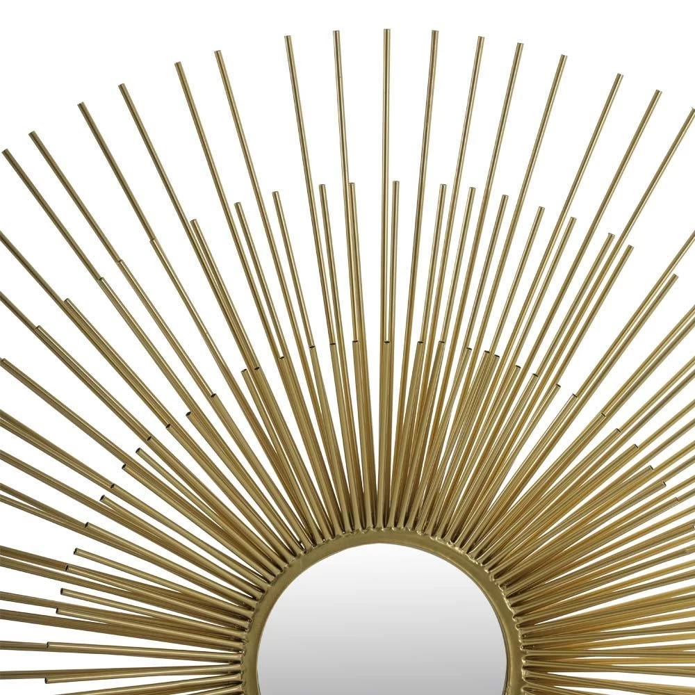 Flaunting a sunburst design, our Elio framed mirror is a statement piece to accent the walls of your living space. Crafted using quality materials, this wall decor accessory has an appealing 3D effect due to uneven spikes around the border. A clear glass round mirror in the middle further elevates the beauty of this item.