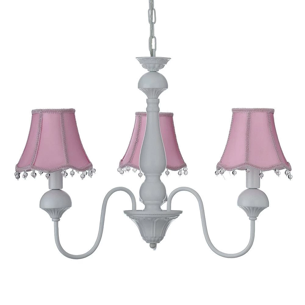 Get this elegant and detailed Italian design-inspired pendant lamp to add unmatching grace to your child’s room. Hanging on a metal structure, it has three pink fabric lampshades that are punctuated with lace designs and crystal beads. Add three E14 bulbs for it to function.