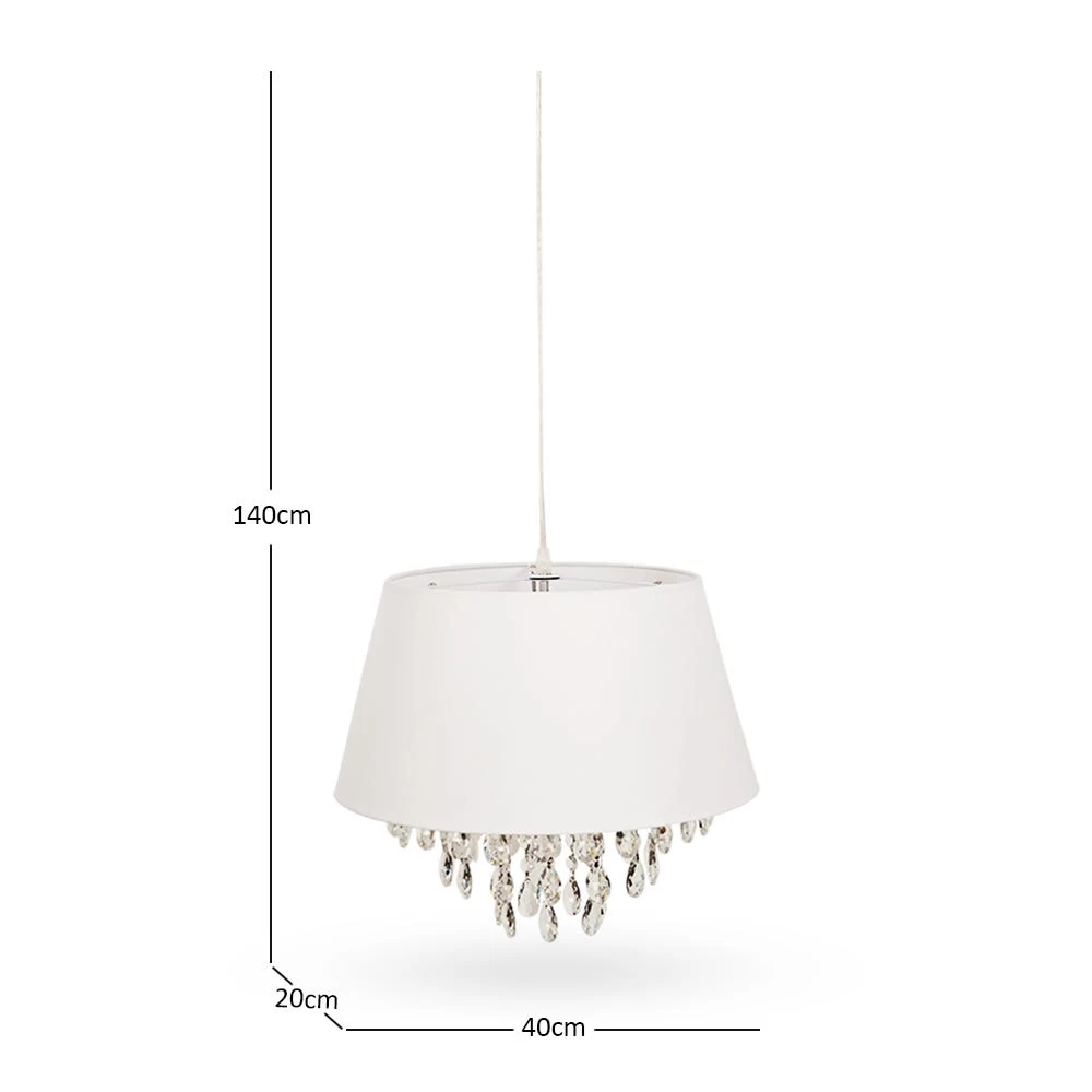 Introduce a dramatic flair to your house with this metal ceiling lamp. This lamp features a chandelier-like design with beautiful crystal hangings and a fabric shade to create an ambience of luxury. Whether used as an essential light source or simply styled to lend a sophisticated vibe, this fixture, when paired with an E27 bulb, is sure to impress.