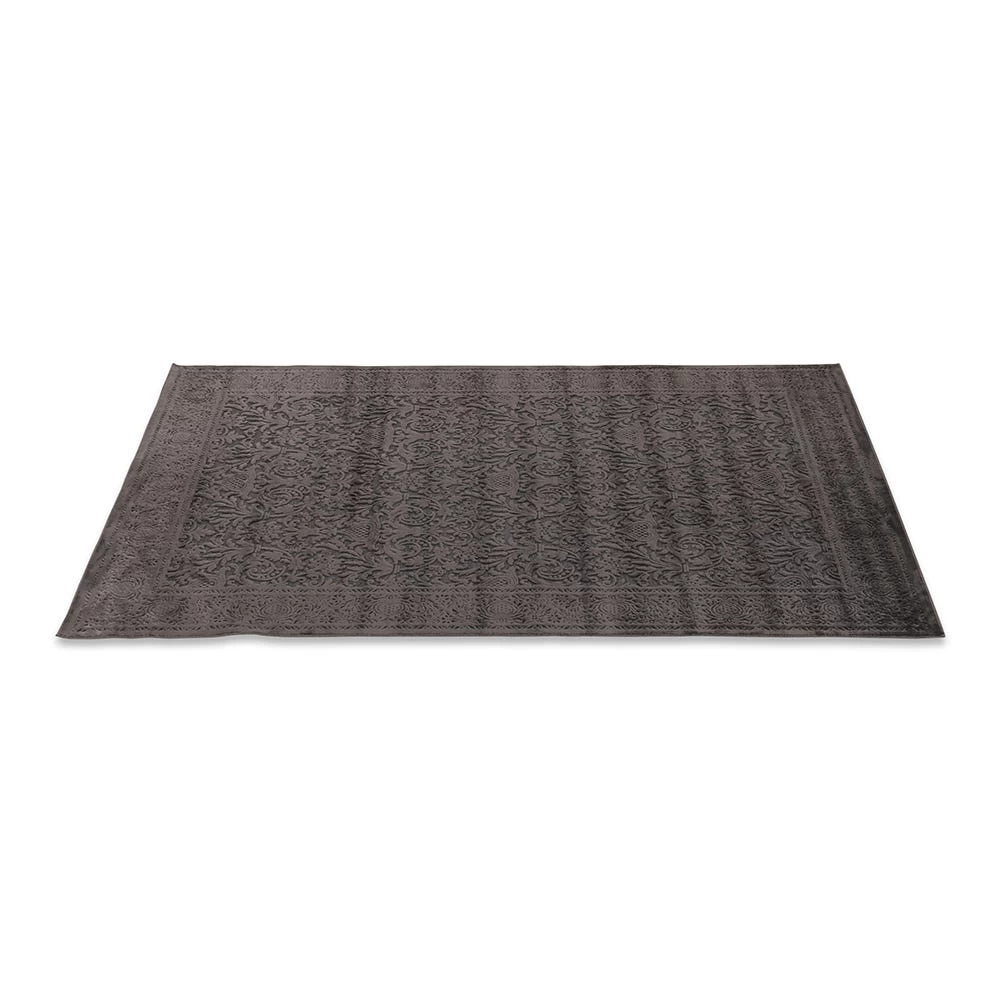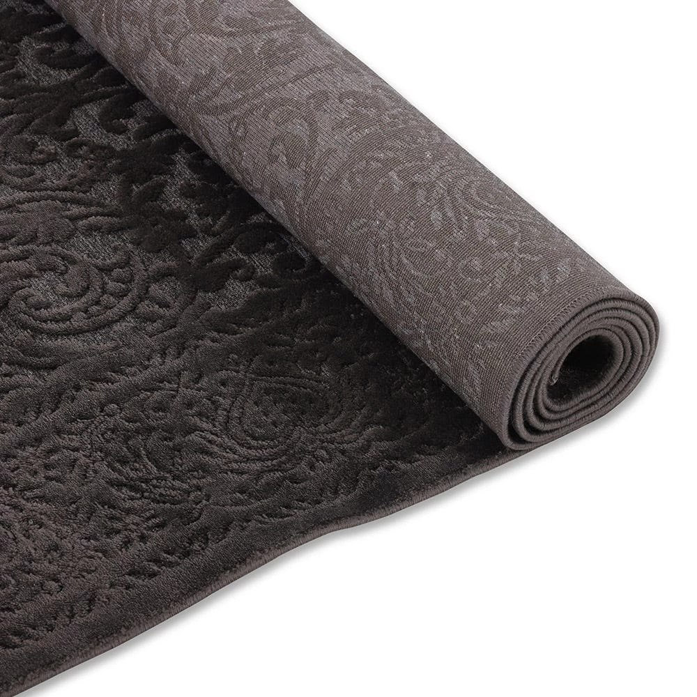 Featuring eye-catching, textured floral designs all over, this woven rug helps you cover your floor with style. Donning a solid anthracite hue, this rug has its pile made of pure viscose fiber for a soft feel and the patterns made of viscose chenille for a natural look. Moreover, the back of this rug is regenerated cotton, which reduces the ecological footprint.