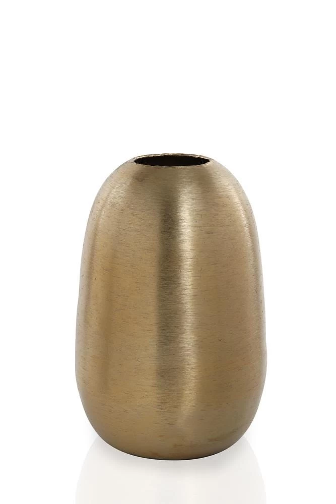 A wonderful brushed gold finish gives this fat metal vase added shine and depth. It fits into any environment, both contemporary and traditional, due to its simple and timeless aesthetics. Add your flowers and branches to it or leave it as a sculptural work of art.