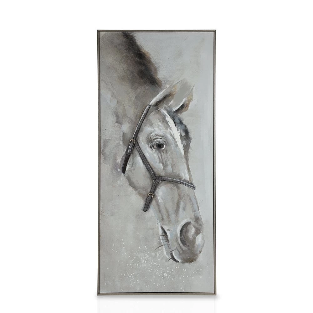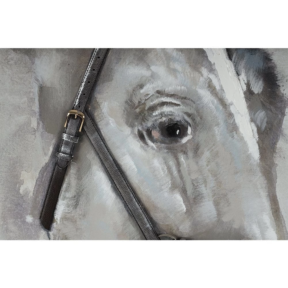 This hand-painted and printed canvas oil painting is the modern way to brighten the walls of your home. By adding a high quality framed wall art to the living space, you can easily accentuate the aura of the room. This black and white artwork featuring a horse with leather noseband details can also be used for gifting purposes.