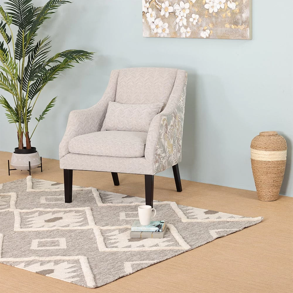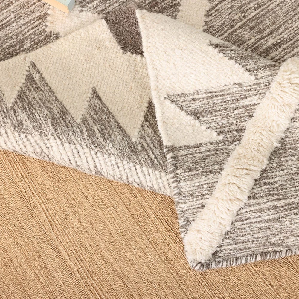 Create a serene yet high-end look for any living space with our well-designed Gale floor rug. The intricately raised patterns on this rug add that must-touch texture to your room décor, while the neutral colour palette lets it easily blend with any interior setting. Completely handwoven, it primarily features natural wool pile and has a dyed cotton base.