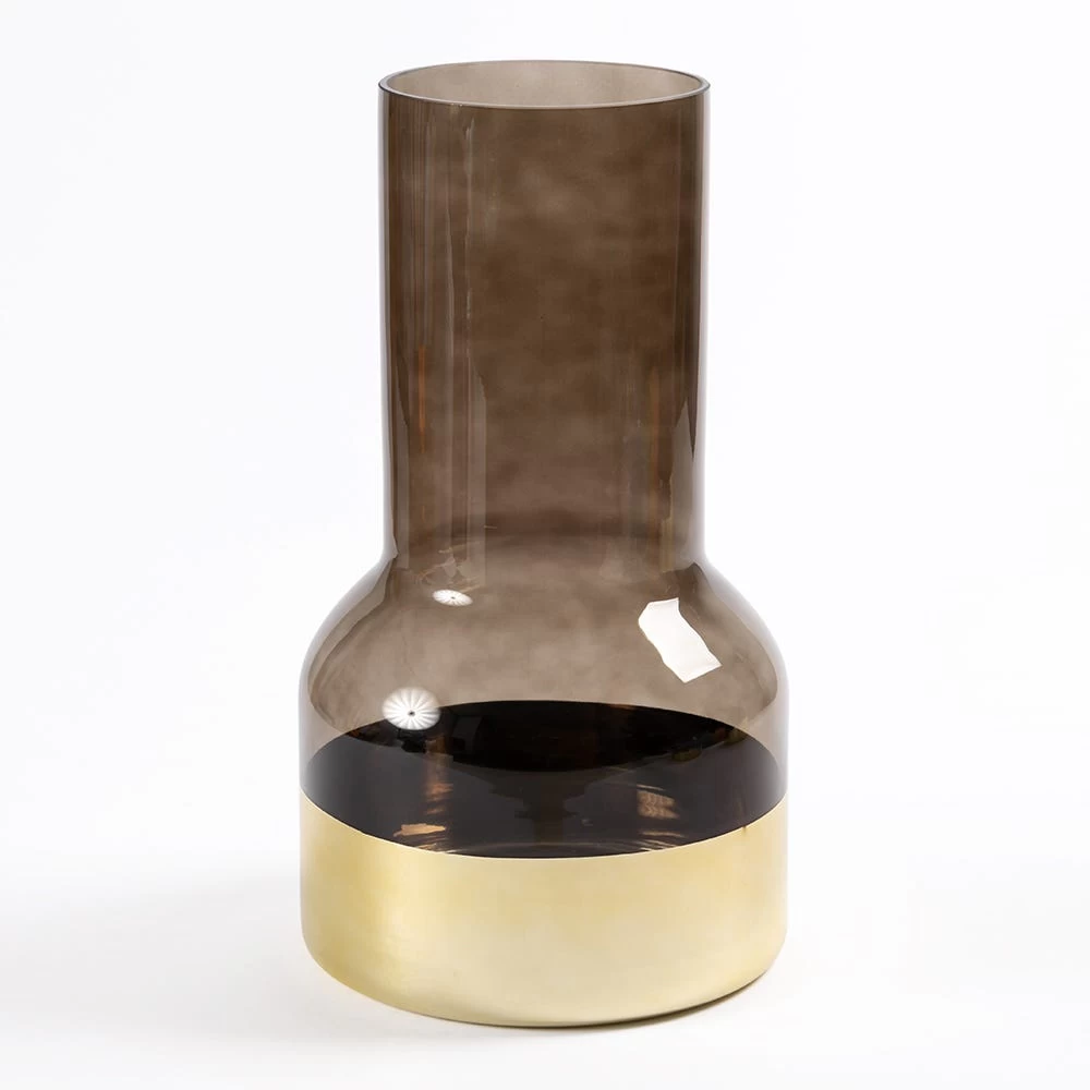 Behold the exquisite handmade beauty of this enchanting vase and make an impressive statement in your home decor. Crafted meticulously by hand using 100% glass, this vase is an elegant statement piece that embodies the beauty of artisanal craftsmanship. With its regal coffee and glamorous gold accents, it exudes luxury and sophistication.