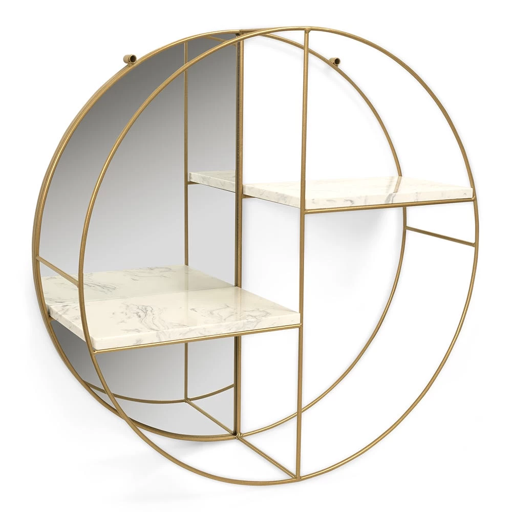 Lend a touch of luxury into your home with this wall shelf. Made of sturdy metal, faux marble, and mirror, this shelf sports an elegant and refined design with two tiers that are compact yet spacious enough to hold your favourite decorative items. This shelf is adorned with a sleek mirror for viewing, making it a perfect combination of style and functionality. The marble detailing exudes a touch of sophistication into any room, while the polished finish adds depth and glamour.