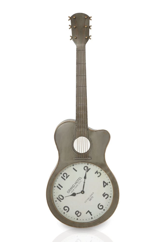 This hanging clock is the perfect piece for music lovers. Coming in the shape of a guitar, a clear white dial is attached within its core. Style up your bedroom or living room by placing this on your empty walls. The grey whitewash tone will universally match with any décor.
