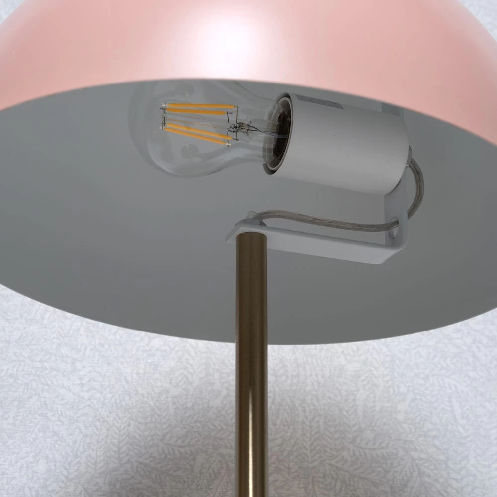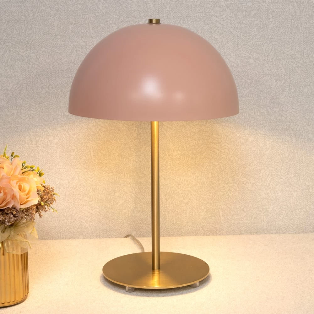 Illuminate your interiors with this classic yet timeless jazzy table lamp. Crafted from metal with a lacquer finish in pink, the body of this lamp features a streamlined pole with a sturdy and round pedestal base.