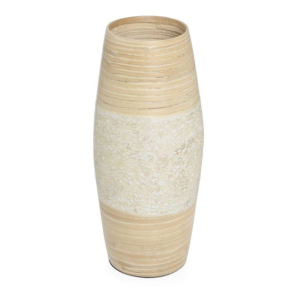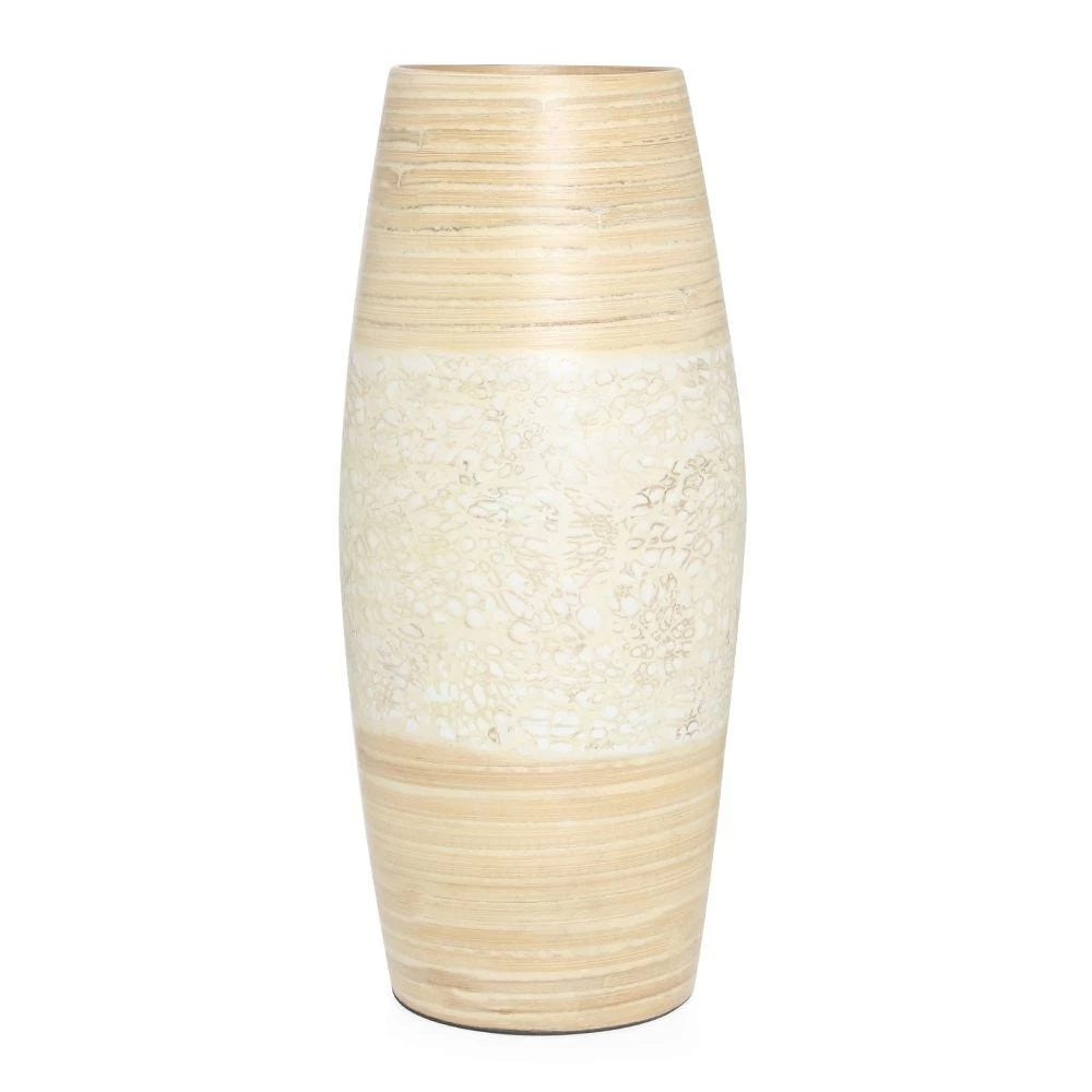 Elegantly highlighting the eggshell inlaid body, this bamboo vase will enhance any living space. With its smooth textured details and neutral hues, this vase blends seamlessly with every décor style and makes a statement even without flowers.