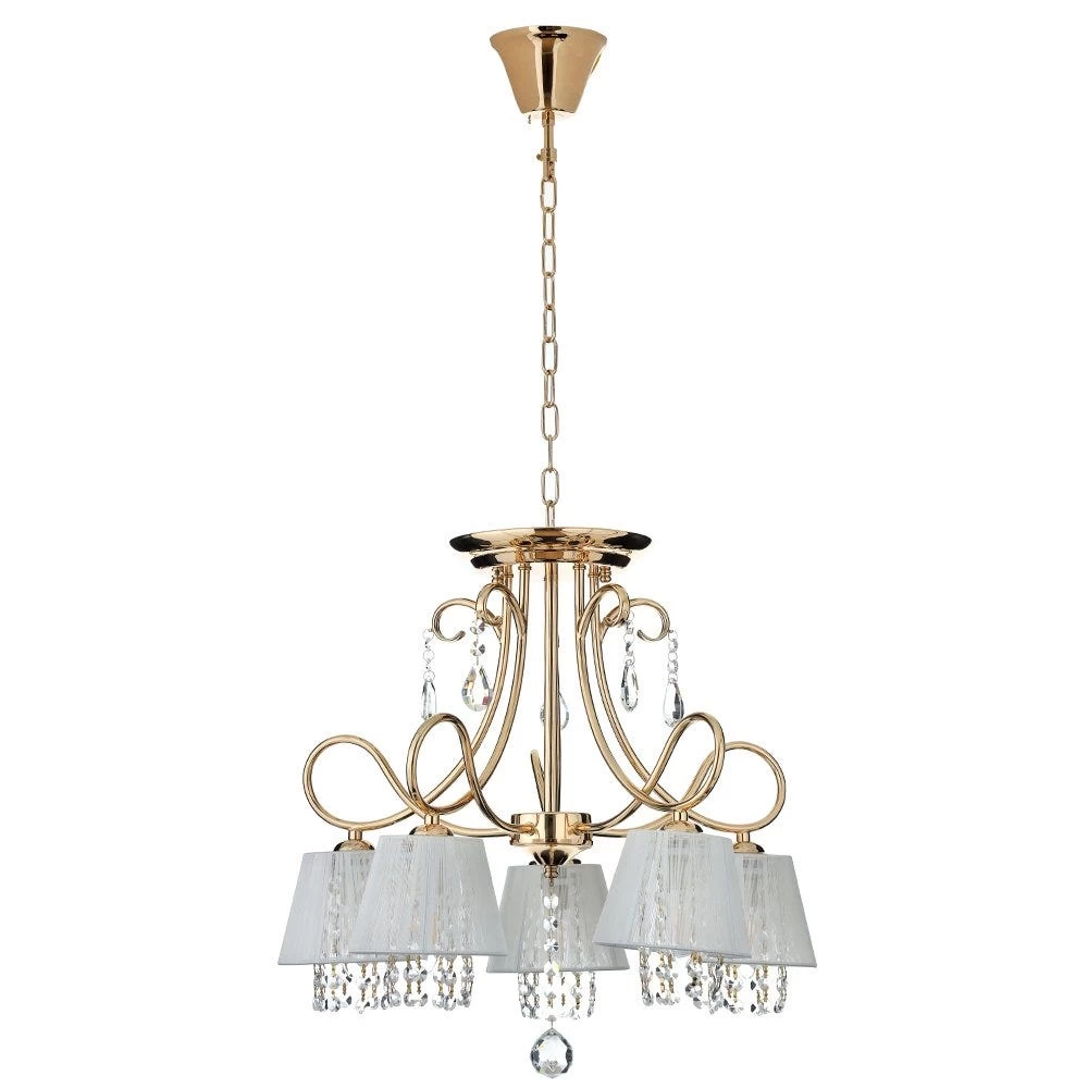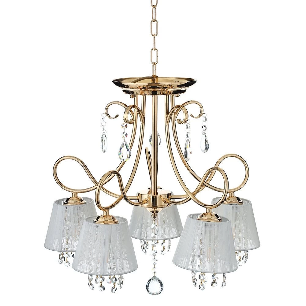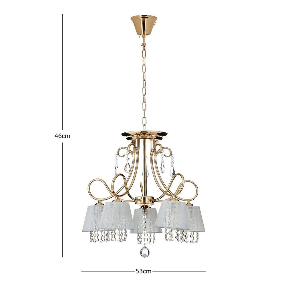Lend a dash of grandeur to your home with this elegant chandelier finished in regal French gold hues. Embellished with crystal danglers, this chandelier emits a powerful beam of light to illuminate the area with a bright radiance. The décor accessory is designed with five lampshades that need to be fixed with E14 LED bulbs for a sparkling glow around.