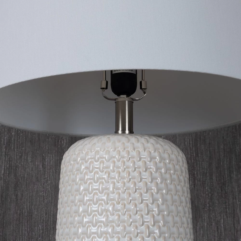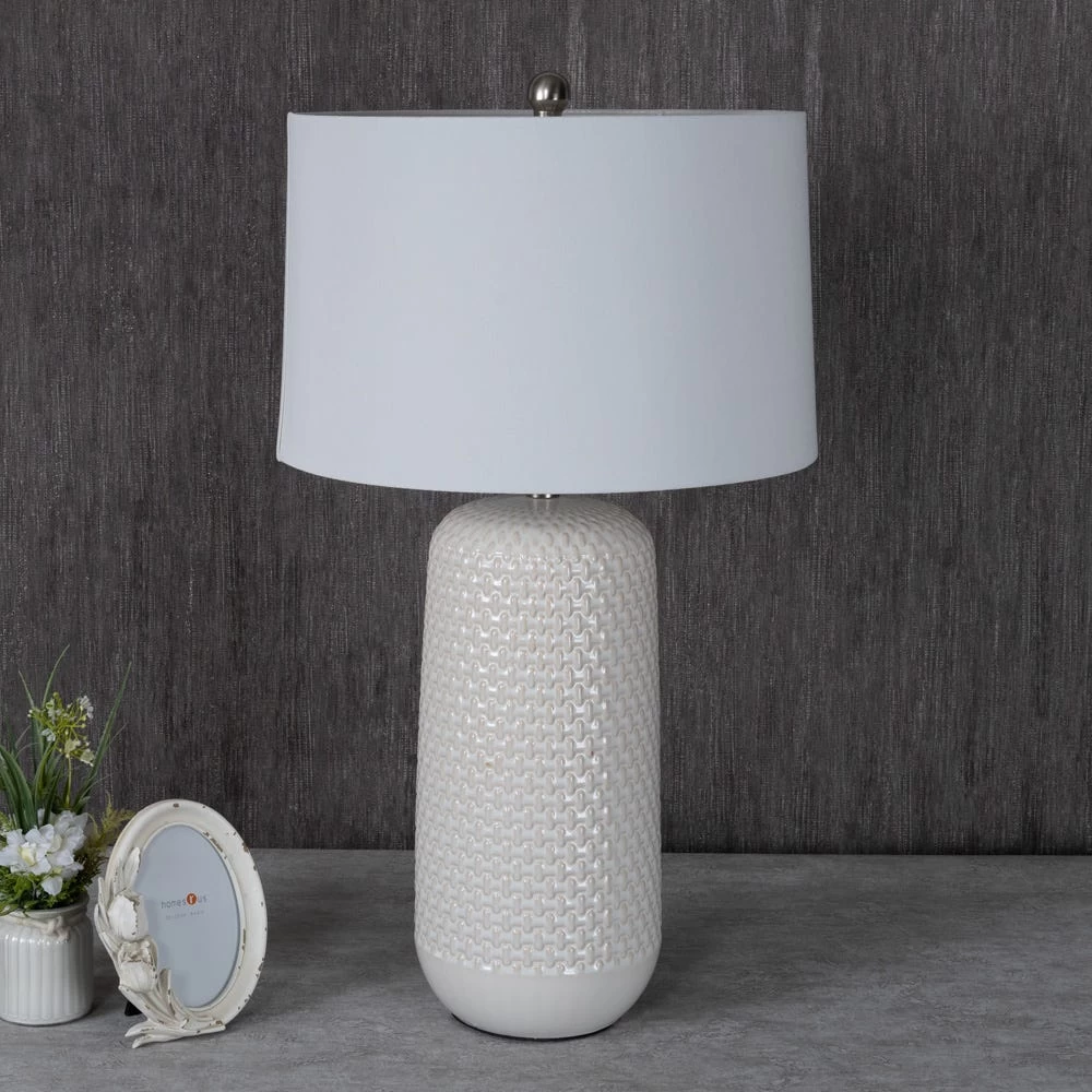 Featuring a stunning contemporary design, this table lamp will give your home a casual, modern aesthetic. A raised pattern accents its textured body, while the cream tone adds a refined touch. The classic fabric lampshade sets ambient lighting when fitted with an E27 bulb of 60W.