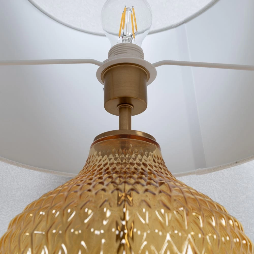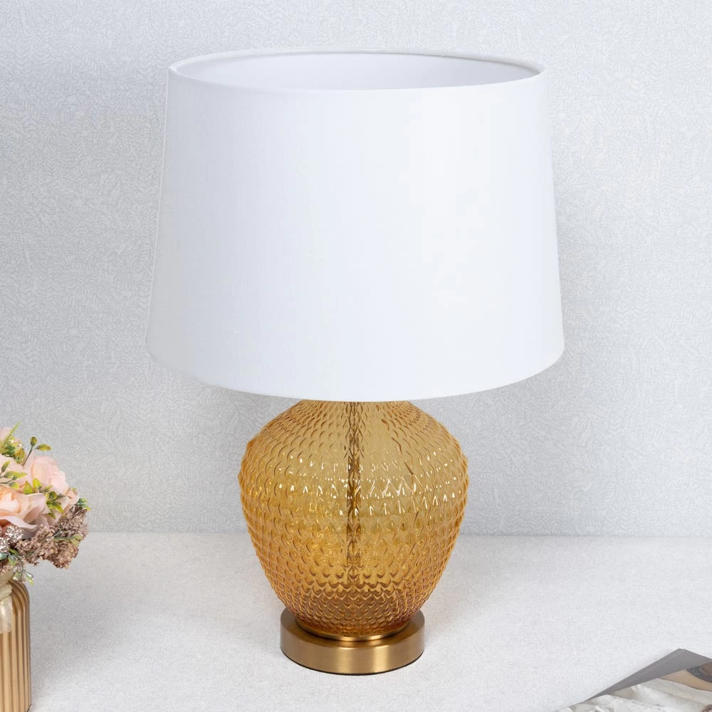 Complement the interiors of your space by giving it a royal and gorgeous appearance with this remarkable clear table lamp. Made of a unique glass body and gold metal accents with a classic fabric shade that emits the perfect amount of reading light while setting up your space’s ambience and mood.