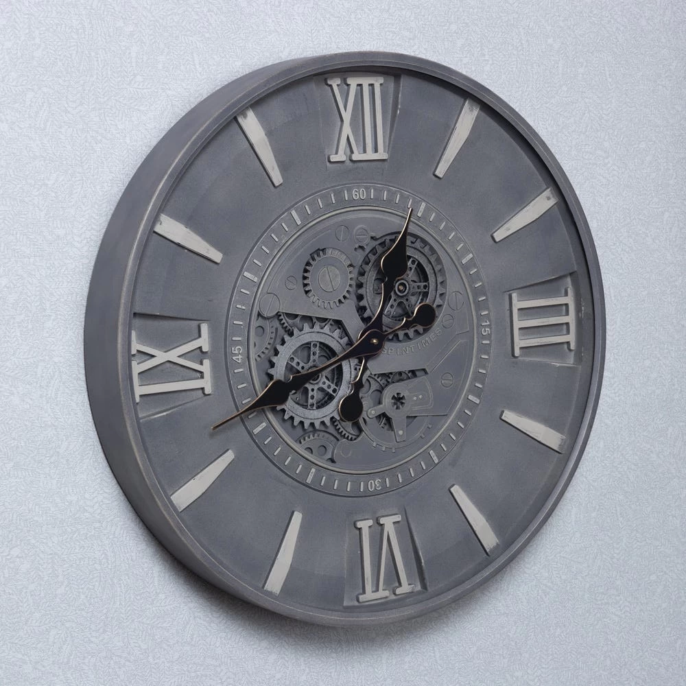 This graceful wall clock is adorned with a grey silhouette that combines striking accents to suit any interior. This clock is easy to read even from far away as it sports a circular shape and features clear roman numerals that exude sheer elegance.