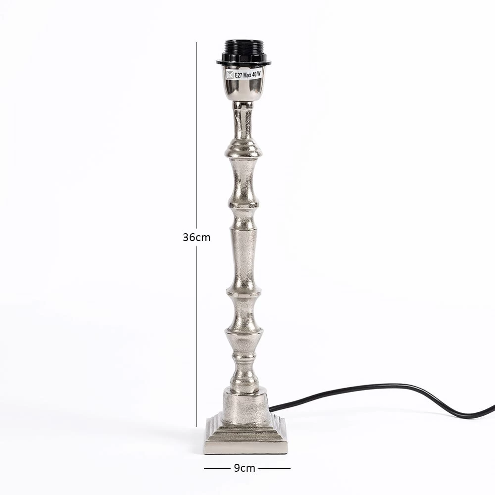 Upgrade your interior design with this premium-quality lamp base and exude a timeless aesthetic for your living space. Crafted from high-quality aluminium with a sleek nickel finish, this lamp base radiates polished elegance and timeless style. The E27 bulb fitting allows for versatile lighting options, and the compact size makes it the perfect statement piece.