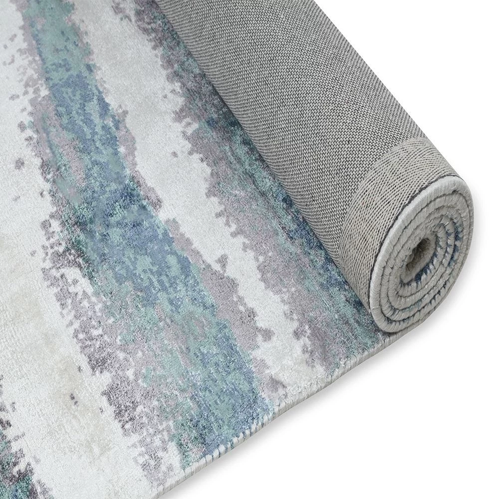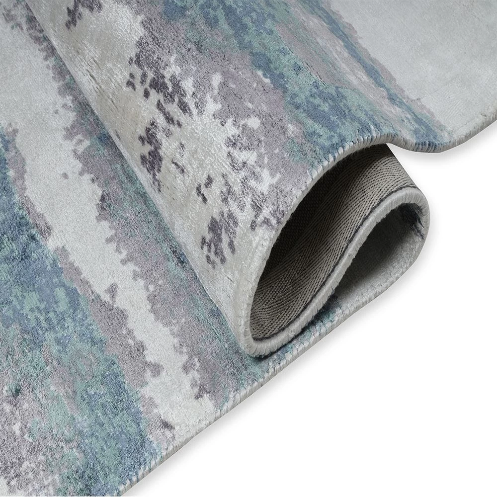 This super-soft silky viscose abstract patterning rug is masterfully designed to look like a perfect footing for contemporary living spaces. Made by skilled weavers in rural India, this rug flaunts the soft washes of colours in muted tones.