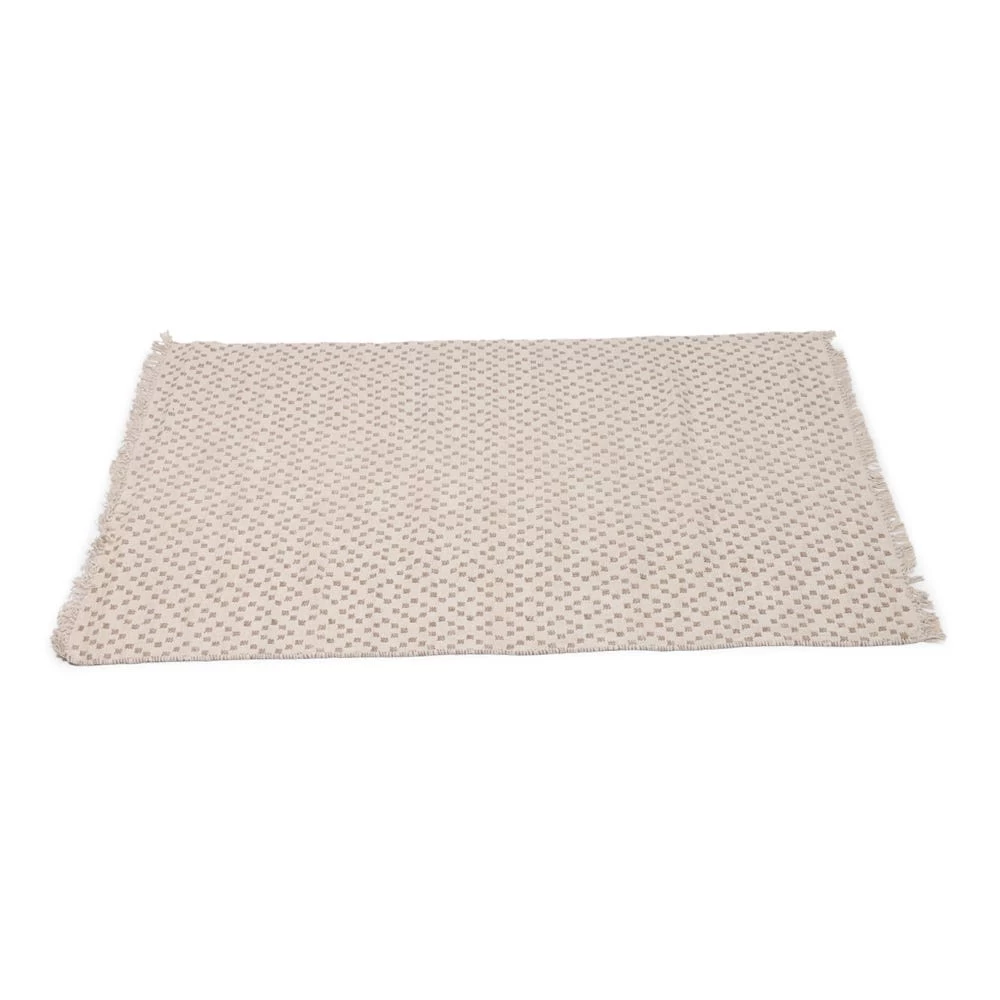 Exuding an artisan-crafted look and contrasting texture, this rug is a piece of art for the floor of your home. With a neutral colour scheme, this cotton rug in beige has a soft feel underfoot and is easy to maintain. Explore other available colours from the Mekhla rug collection.