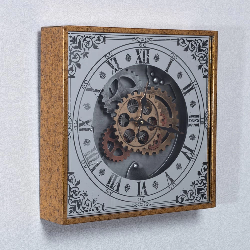 Exuding vintage allure, the wall clock is an ideal choice. Its square shape and prominent gold-tone hands bring a level of charm to your room. This product requires one AA battery to operate.