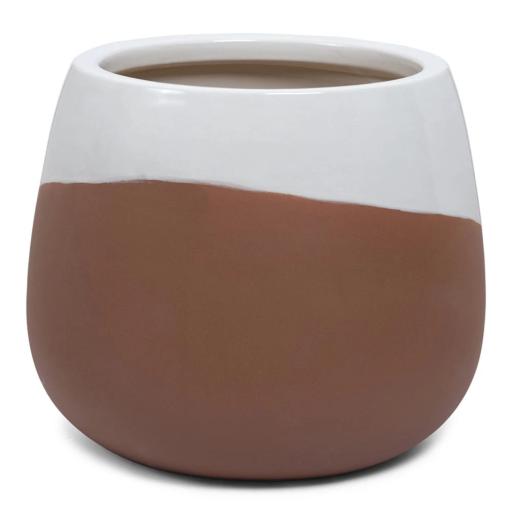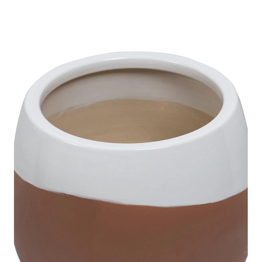 Make your flower arrangement look a little fresher and more gorgeous by placing it in this ceramic planter. The vase has a glazed finish featuring white and matte terracotta hues that add a touch of finesse to the decor in your indoor spaces, balcony, and patio.