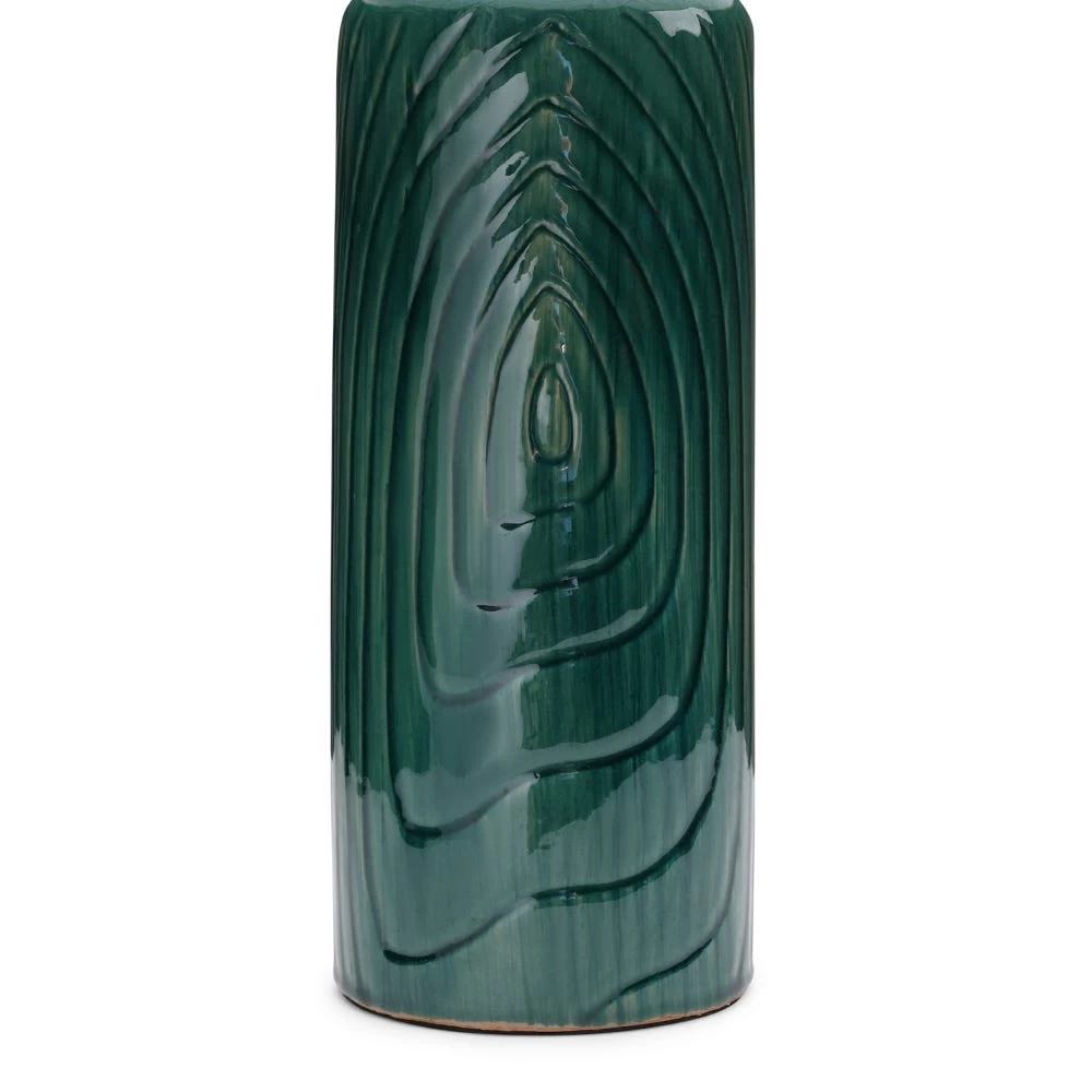 Add a little modernity to any room with the addition of this remarkable table lamp. Accented with textured patterns for plenty of visual appeal, this candle-like glazed ceramic table lamp in green mellows down with its linen lampshade on top. Illuminate your surroundings with the addition of an E27 bulb of 60W.
