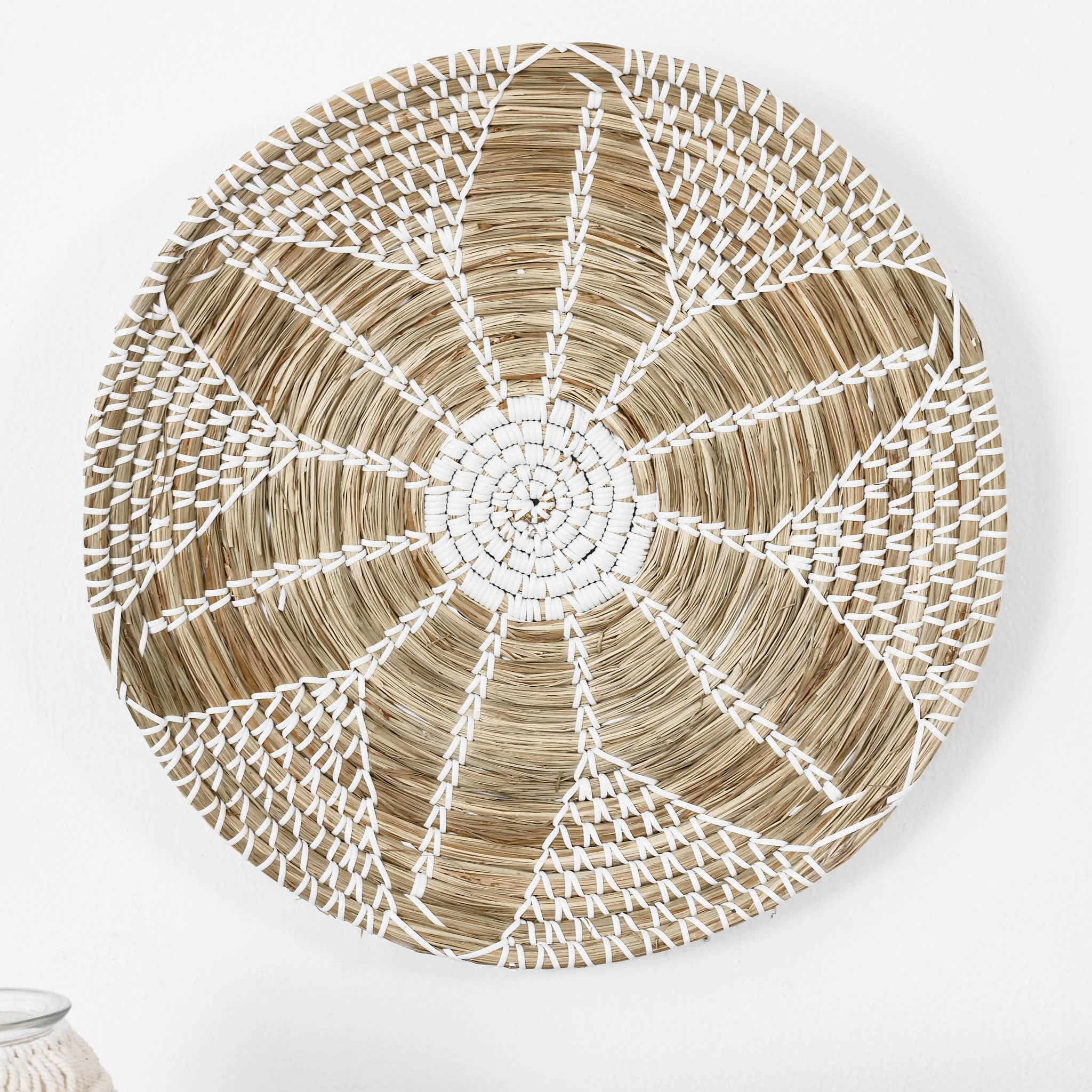 Add texture and dimension to any wall by displaying this exquisite wall decor. It is handmade with seagrass and plastic and features a stunning floral design and intricate detailing that adds a rustic charm to your space. With its natural finish, this wall decor serves as a perfect statement piece that complements any home decor.