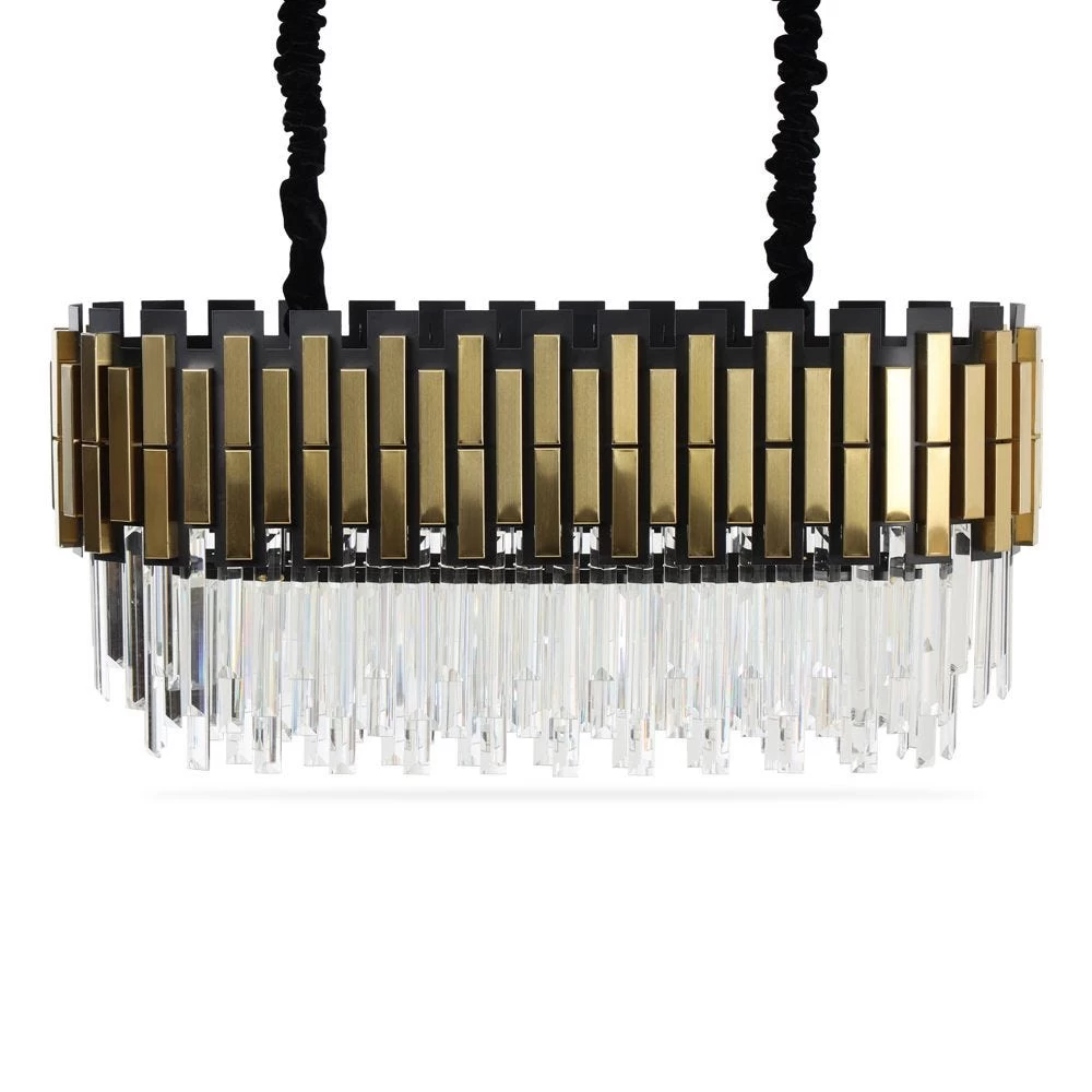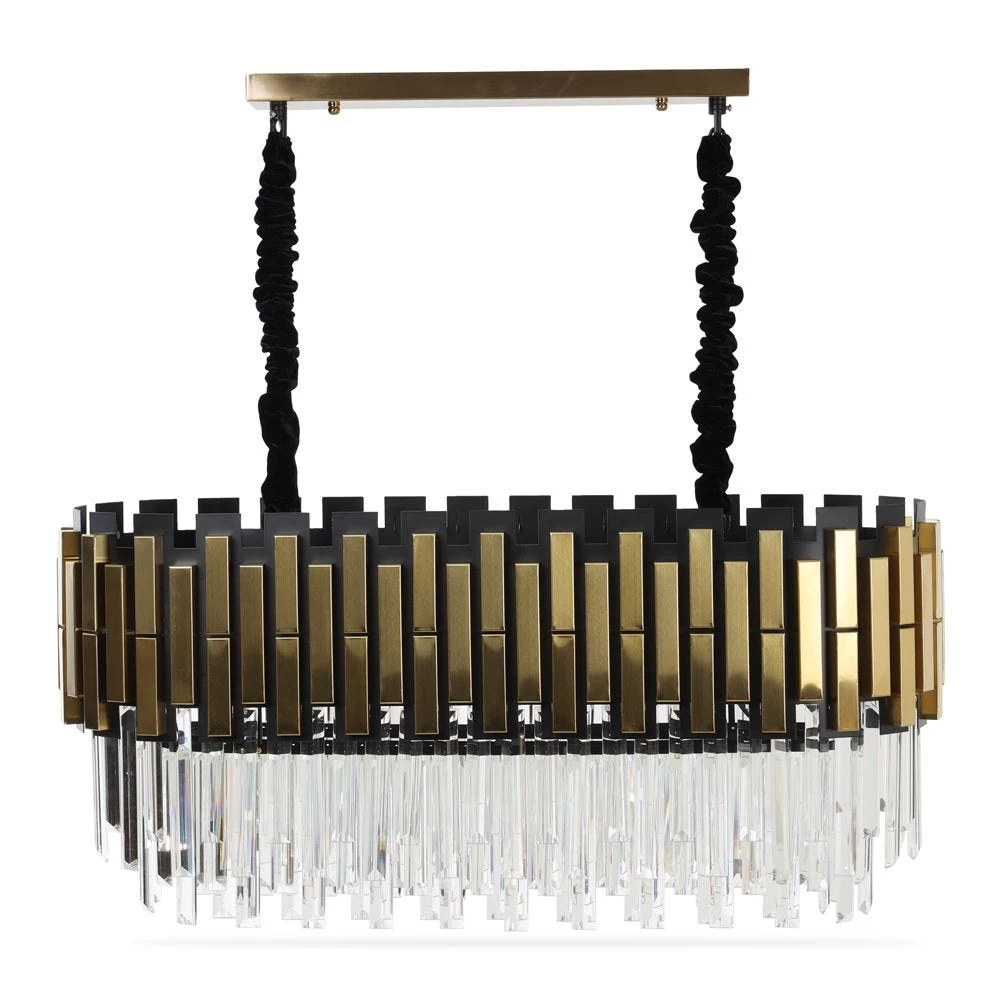 This eye-catching pendant lamp will add a touch of glam and glitz to your space. The gold and black metallic frame lends dimension and character to the design, while the dangling glass crystals give this pendant lamp a dazzling flair.