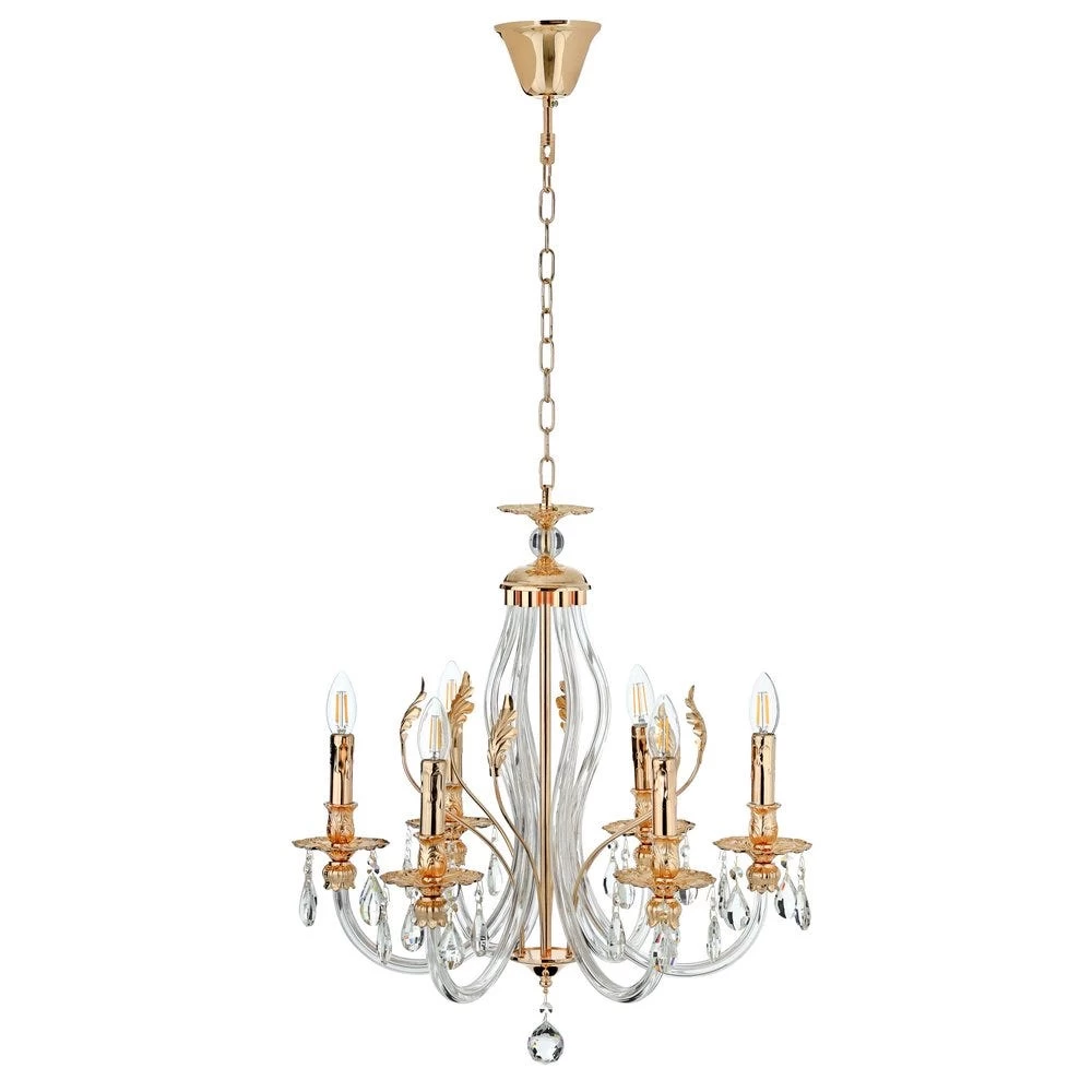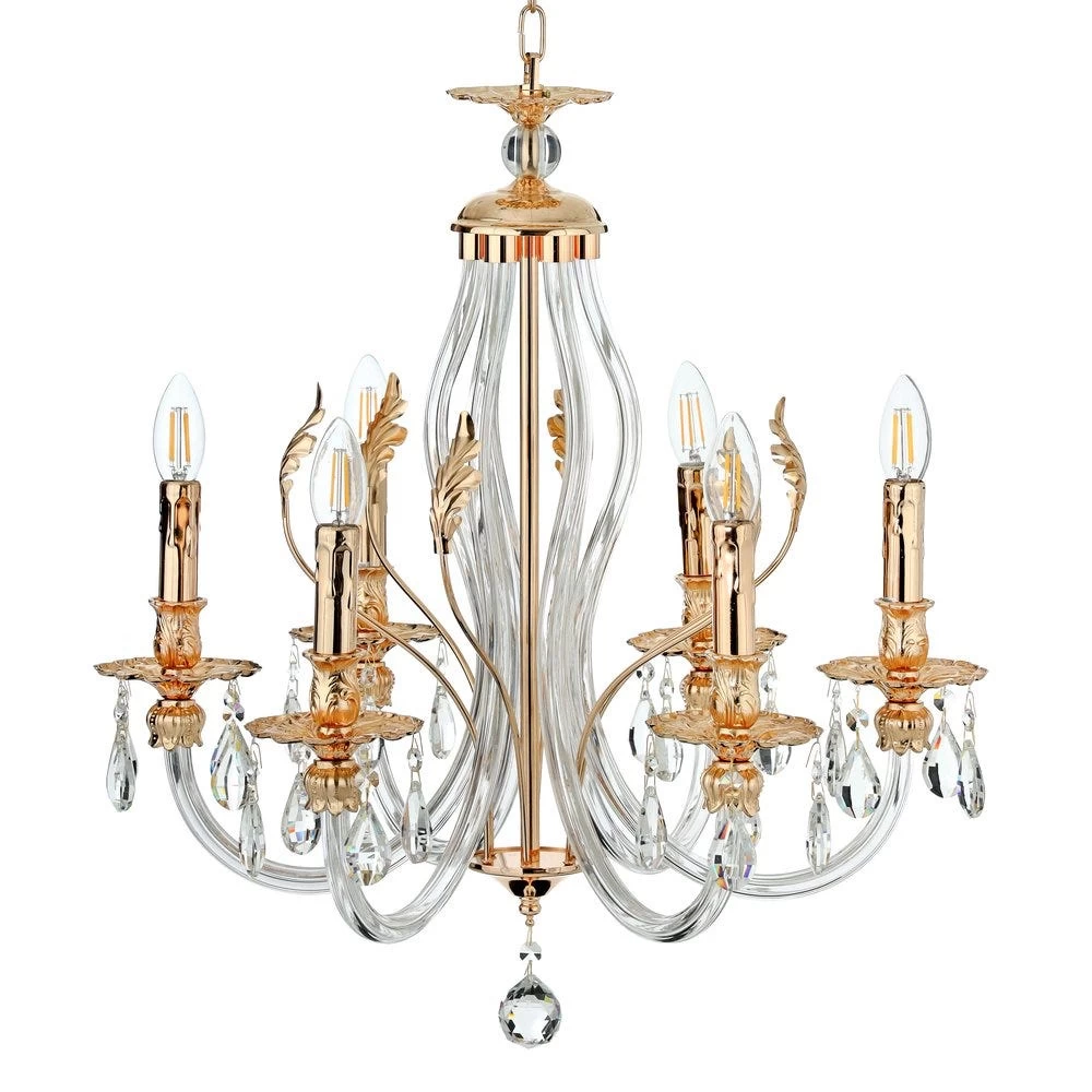 Elevate the décor of your living room or dining space with this attractive pendant lamp, which features a one-of-a-kind Italian design. Made from metal and embellished with glass and crystal accents, this piece illuminates your space like candles when added with six E14 LED bulbs. The finishing in French gold hues makes this piece more stunning.