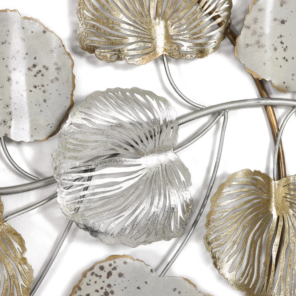 Add a touch of nature to any wall with this charming decor piece. Each of the metal leaves with varying designs is elegantly crafted and set on a round frame for easy hanging horizontally or vertically.