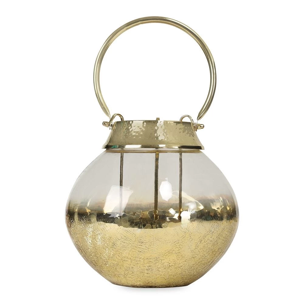 Add elegance and warmth to any space with this intricately handcrafted glass lantern. Sporting a round shape with a half-cracked design, this glass lantern embosses gold and an ombre colour combination for a striking effect.