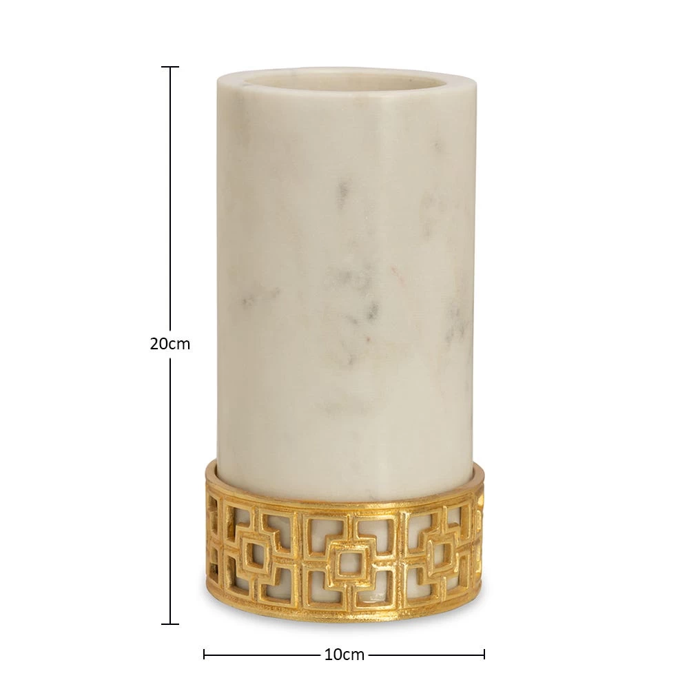Host a special celebration with your friends and family with this marble and metal flower vase. It showcases an intricate design with a beautiful white and gold finish, making it a unique piece to display your budding flowers.